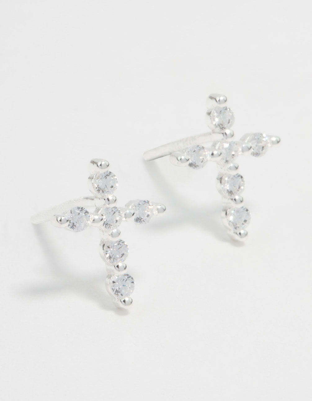 Sterling Silver Marquise Cubic Zirconia Cross Stud Earrings