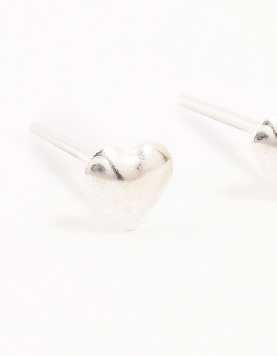 Spread the love with these sterling silver mini puff heart stud earrings! These tiny heart-shaped studs add a sweet, whimsical touch to any look, and their sterling silver shine ensures they'll sparkle for ages.