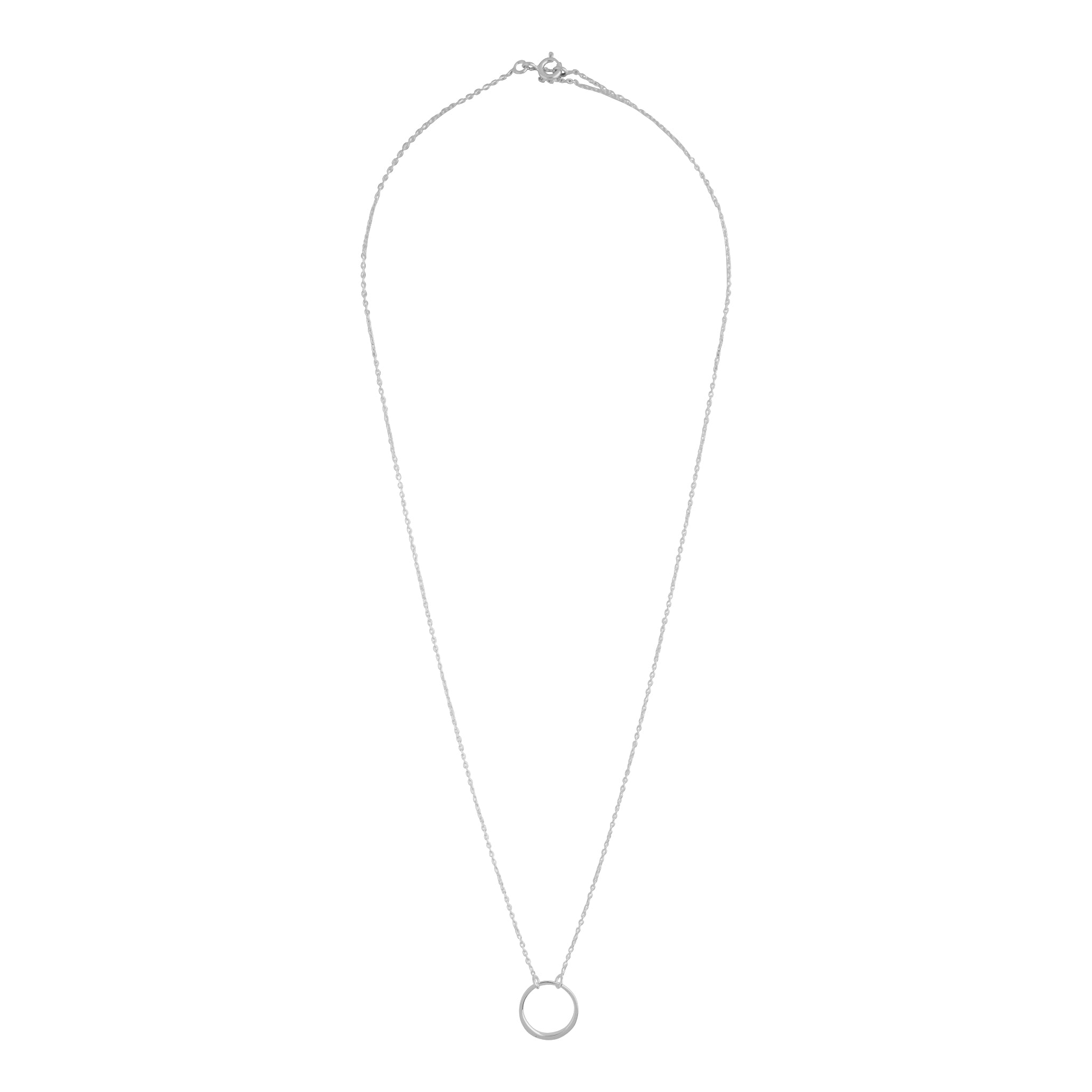 An open circle pendant measuring at 1.3cm on a fine 45cm sterling silver chain.