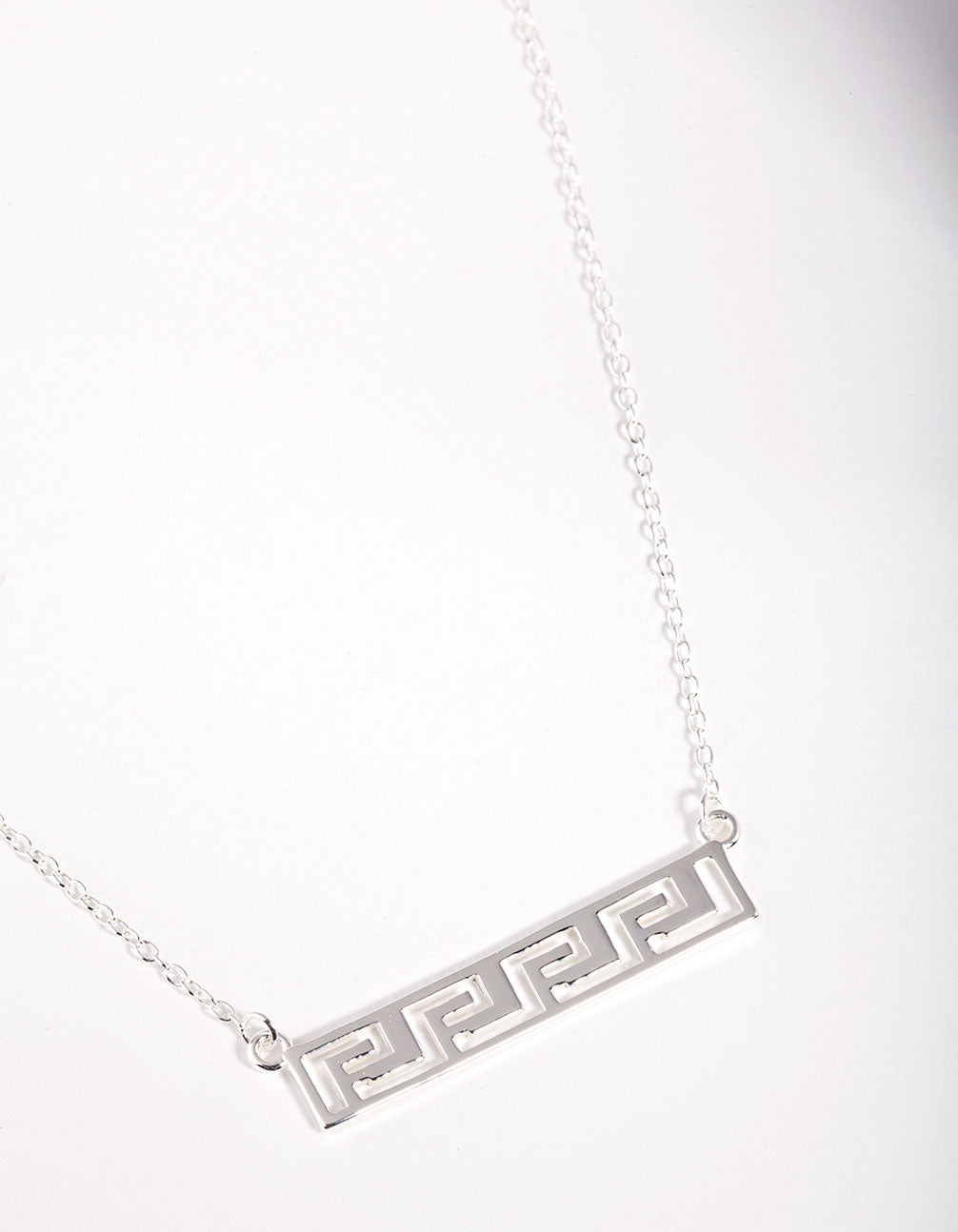 Classic, bold, and always on-trend, sterling silver jewellery pieces will round out your collection and become your new daily staples. Style up your wardrobe with go-to styles made with high-quality materials. This necklace features a fine chain design with a Greek key inspired cut-out rectangle pendant.