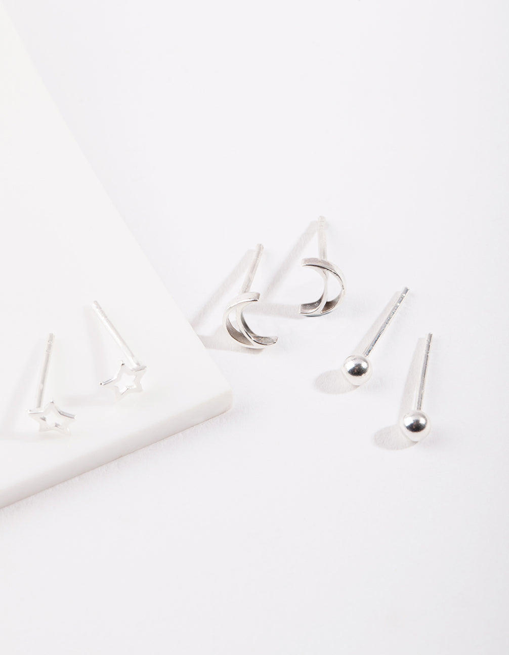 Sterling silver styles will never go out of fashion. This pack comes with a trio of styles in a celestial motif.
