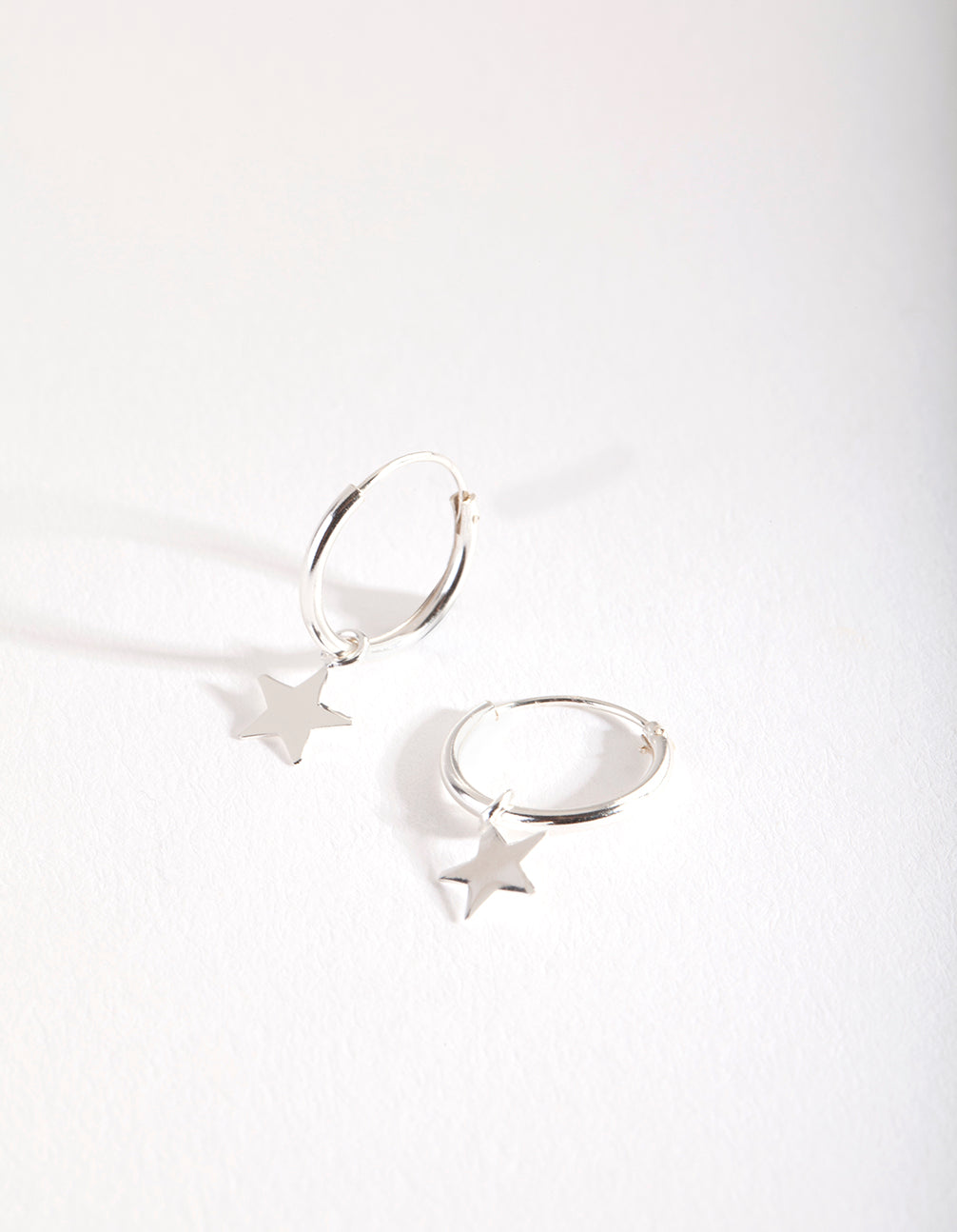Sterling Silver Plain Star Dangle Hoop Earrings