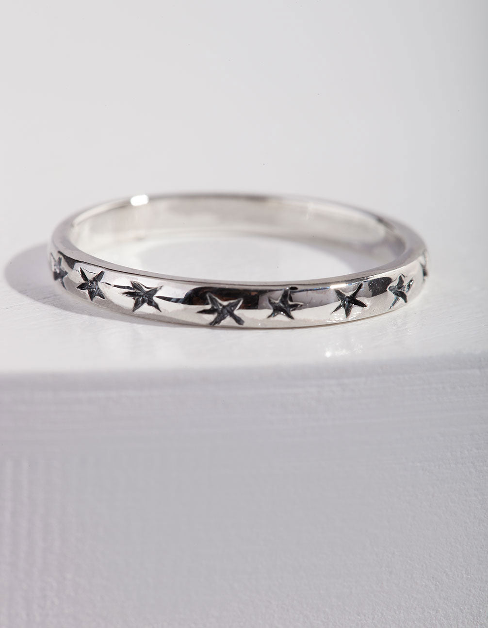 Sterling silver accessories are both reliable and fashionable. Complete your collection with high quality sterling silver pieces. This ring boasts a mini star embellished band design.