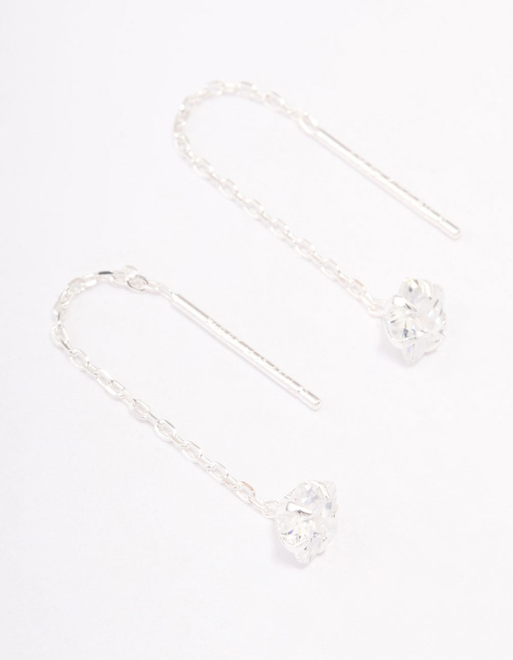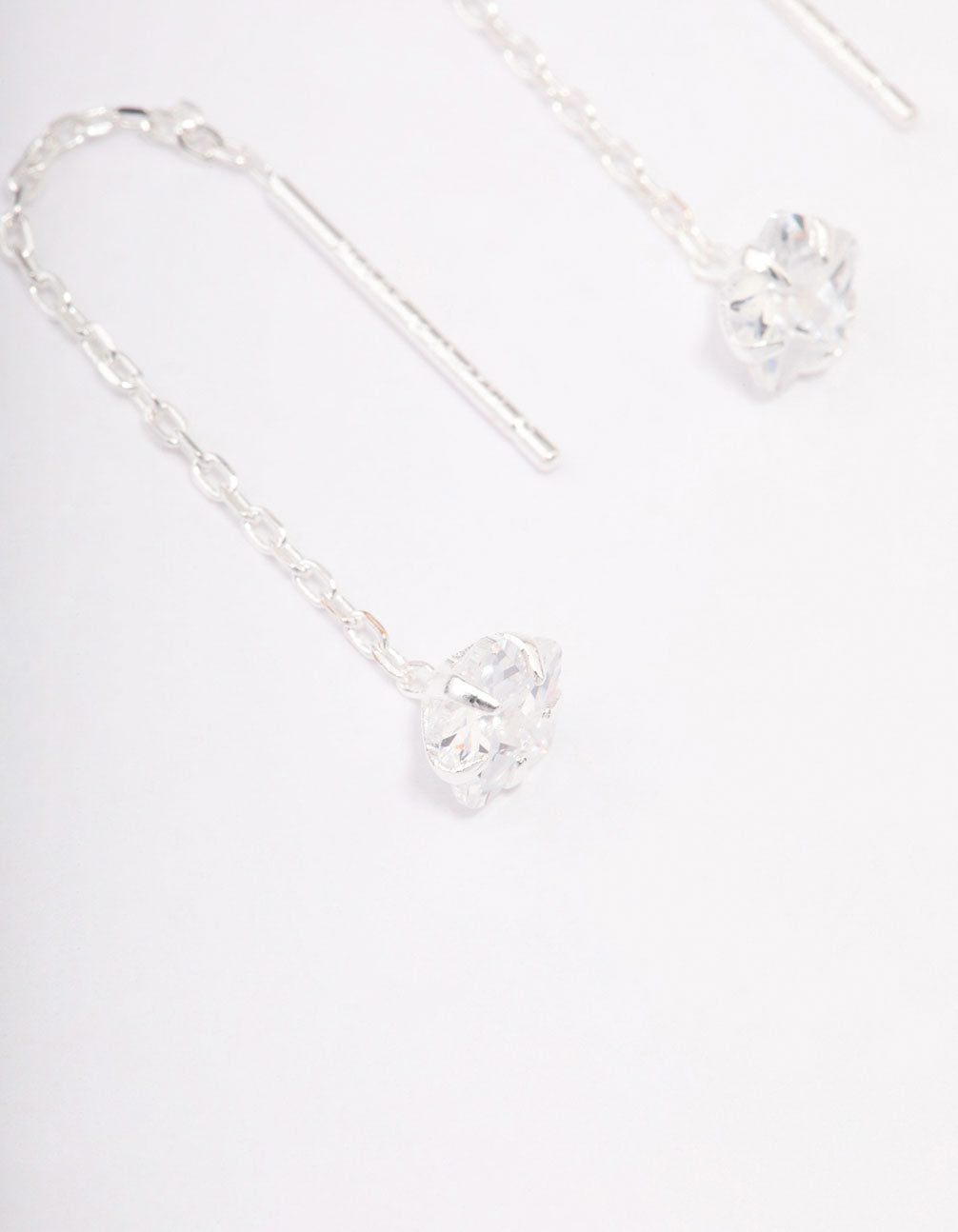 Sterling Silver Round Cubic Zirconia Thread Through Earrings