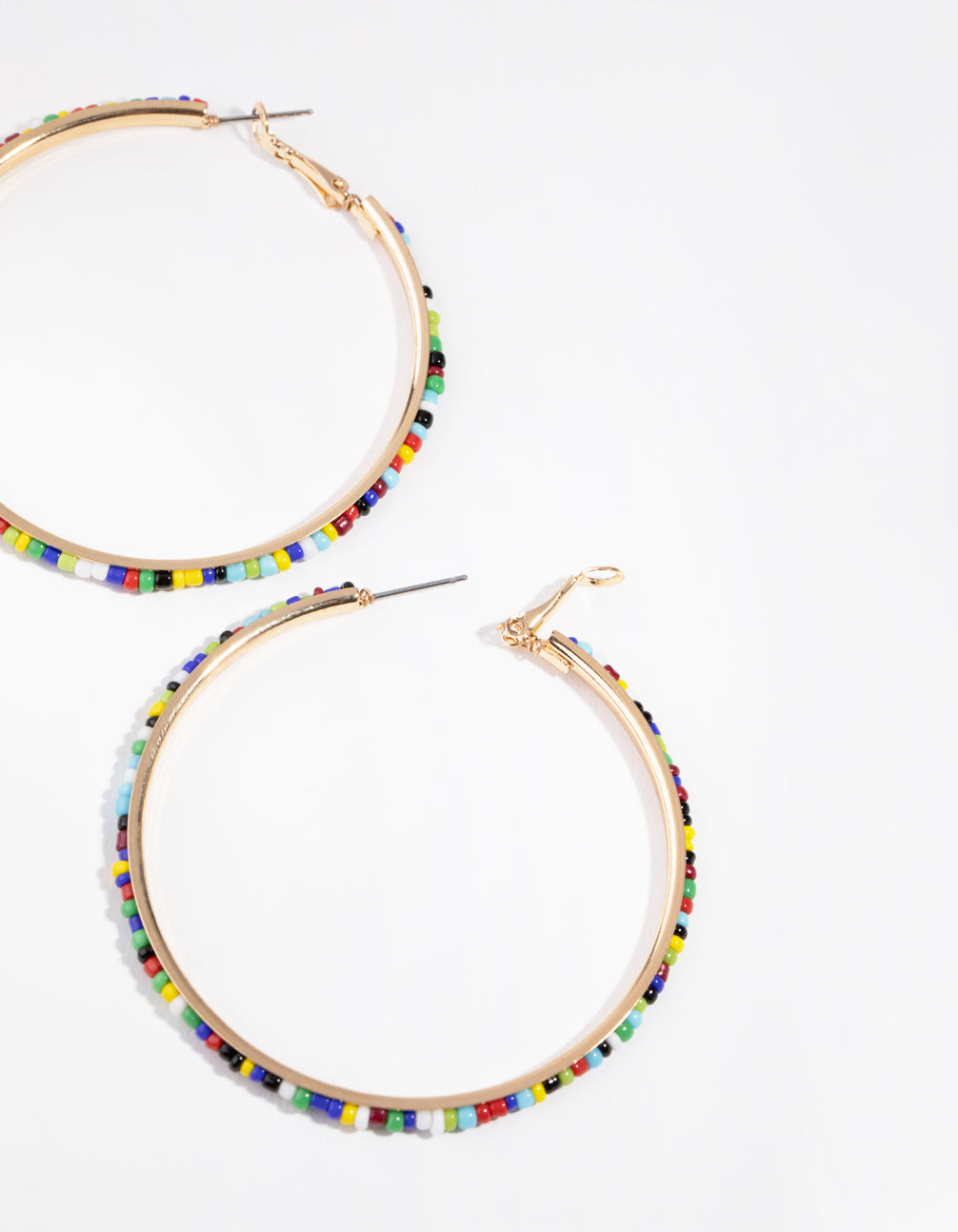 These hoops will instantly make you feel like you're on vacation! Adorned with colourful, vibrant beads on a gold toned setting- these earrings are a great way to incorporate some colour into your everyday wardrobe. Major tropical vibes!