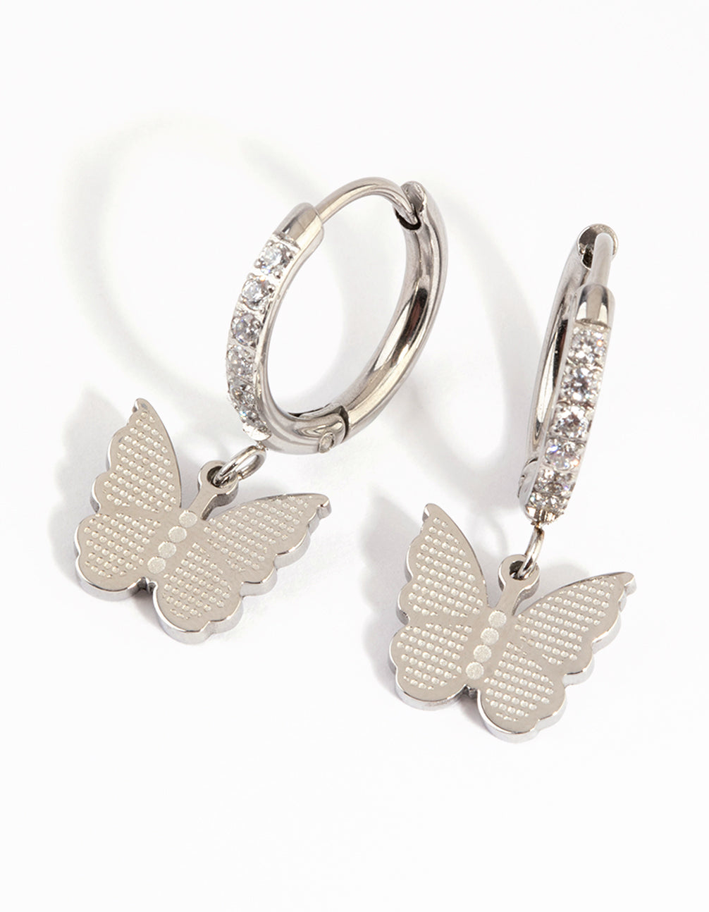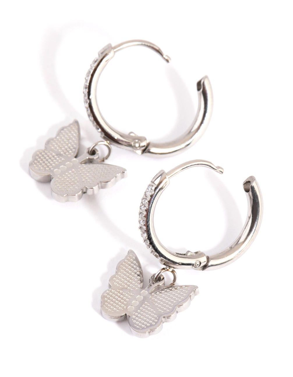 Designed with sensitive skin in mind, the Lovisa Sensitive Jewellery Collection utilises premium materials that reduce the risk of irritation. These earrings are made with surgical steel so they're gentle on skin. They feature a huggie design with butterfly charms. Lovisa loves a butterfly moment!