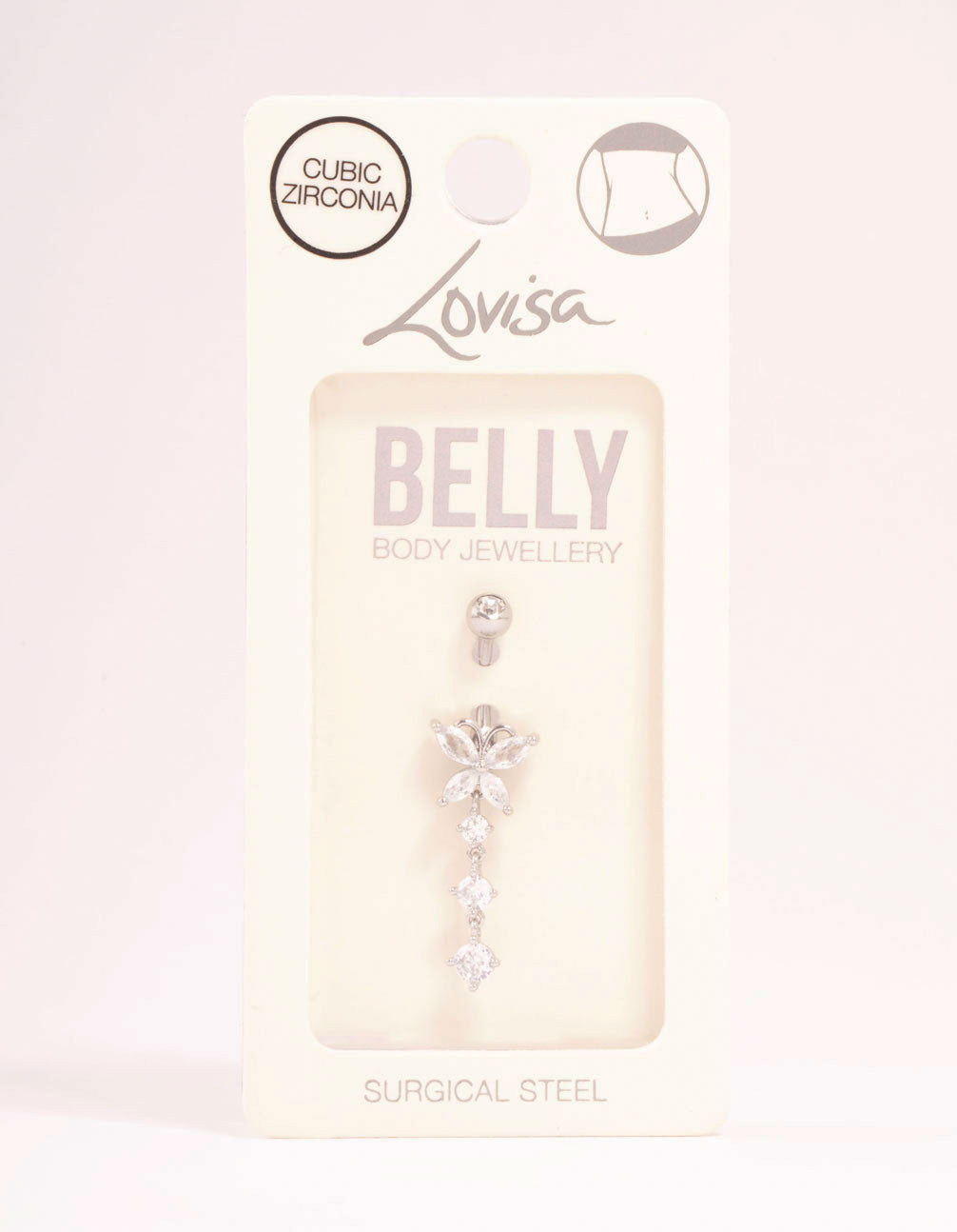 Add some sparkle with this Surgical Steel Butterfly Cubic Zirconia Drop Belly Bar. Crafted with a 14g surgical steel frame and sparkling cubic zirconia, it's perfect for adding refined glamour to any crop top or bikini look.