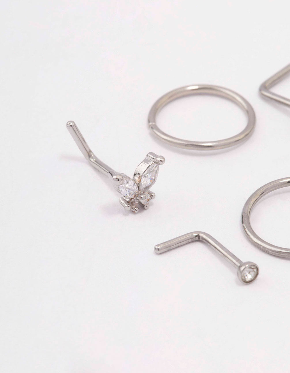 Customise your nose piercing with this set of six, surgical steel nose stud and hoops. Each of these piercings are crafted from genuine surgical steel, a hypoallergenic and durable material perfect for everyday wear.