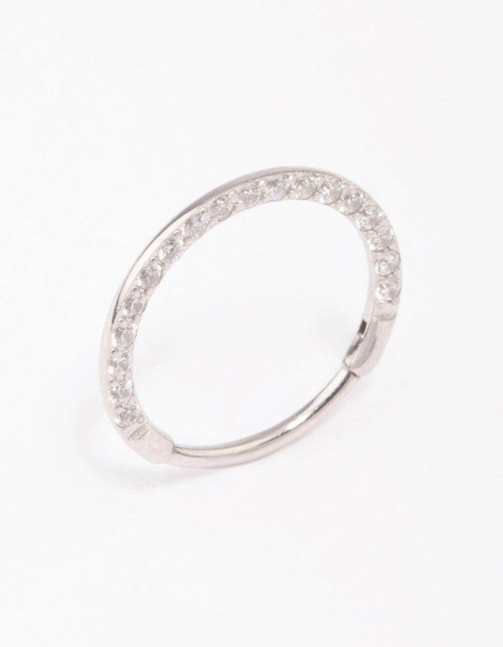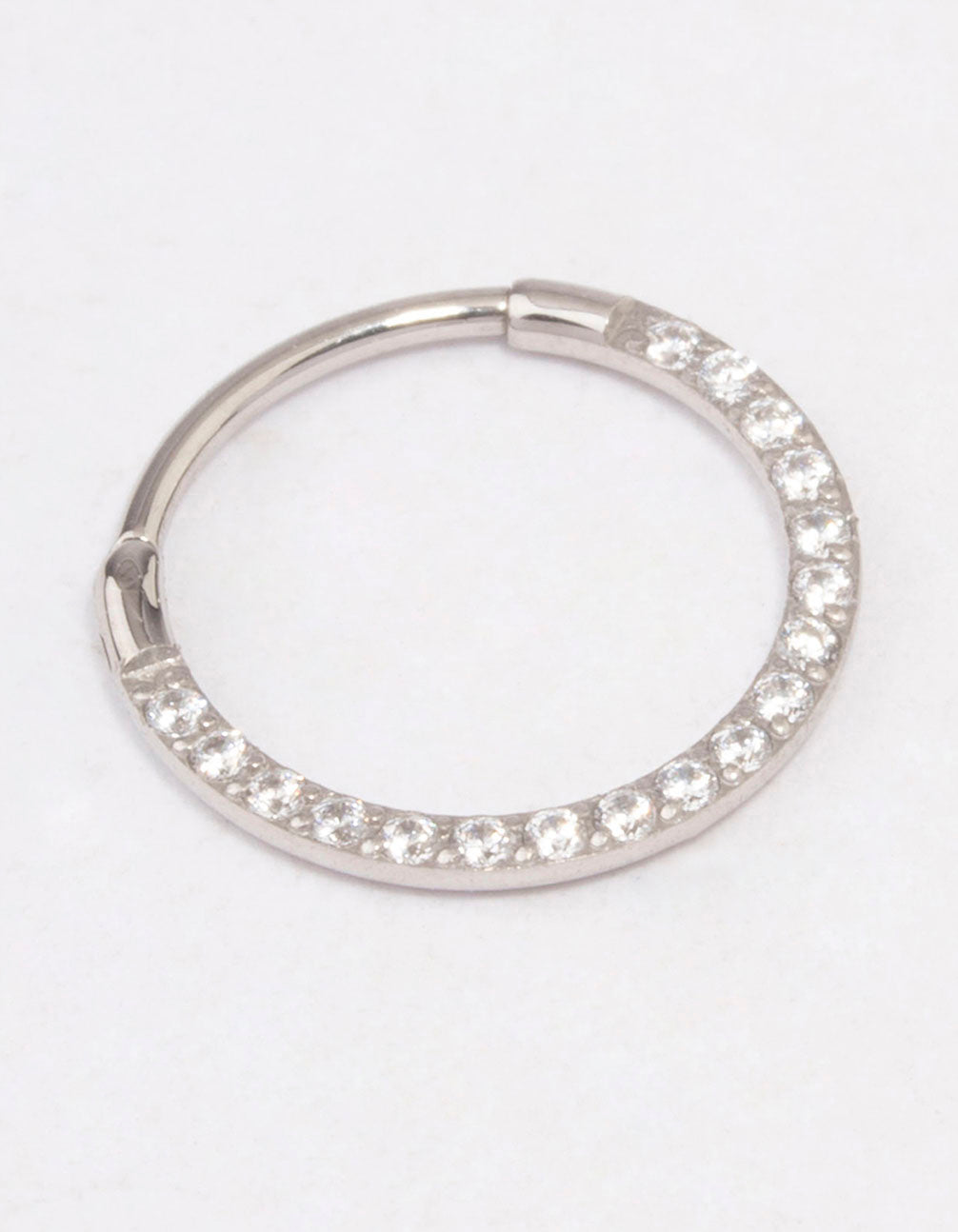 Style this cubic zirconia encrusted, surgical steel clicker ring for a hint of glamour in your stack.