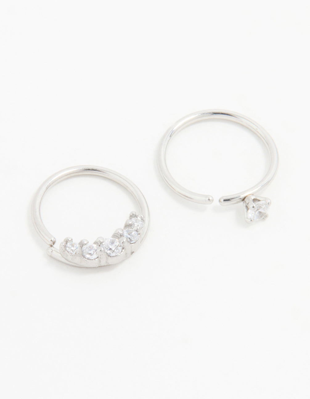 Surgical Steel Cubic Zirconia Double Hoop Nose Ring