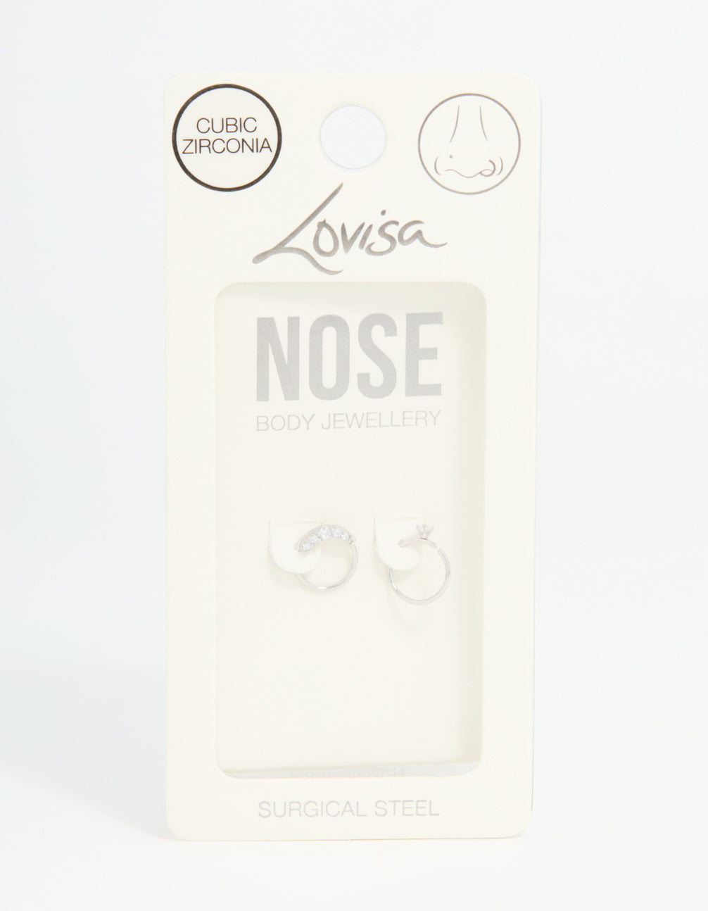 Add sparkle with this Surgical Steel Cubic Zirconia Double Hoop Nose Ring! Hypoallergenic and trendy, its double hoop design is perfect for everyday wear or a night out.