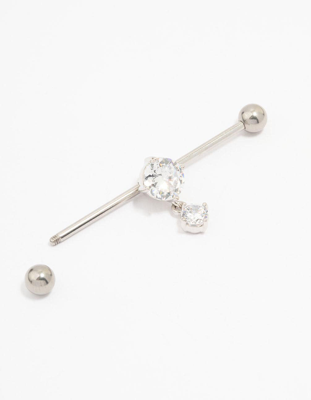 Surgical Steel Cubic Zirconia Drop Piercing Industrial Bar