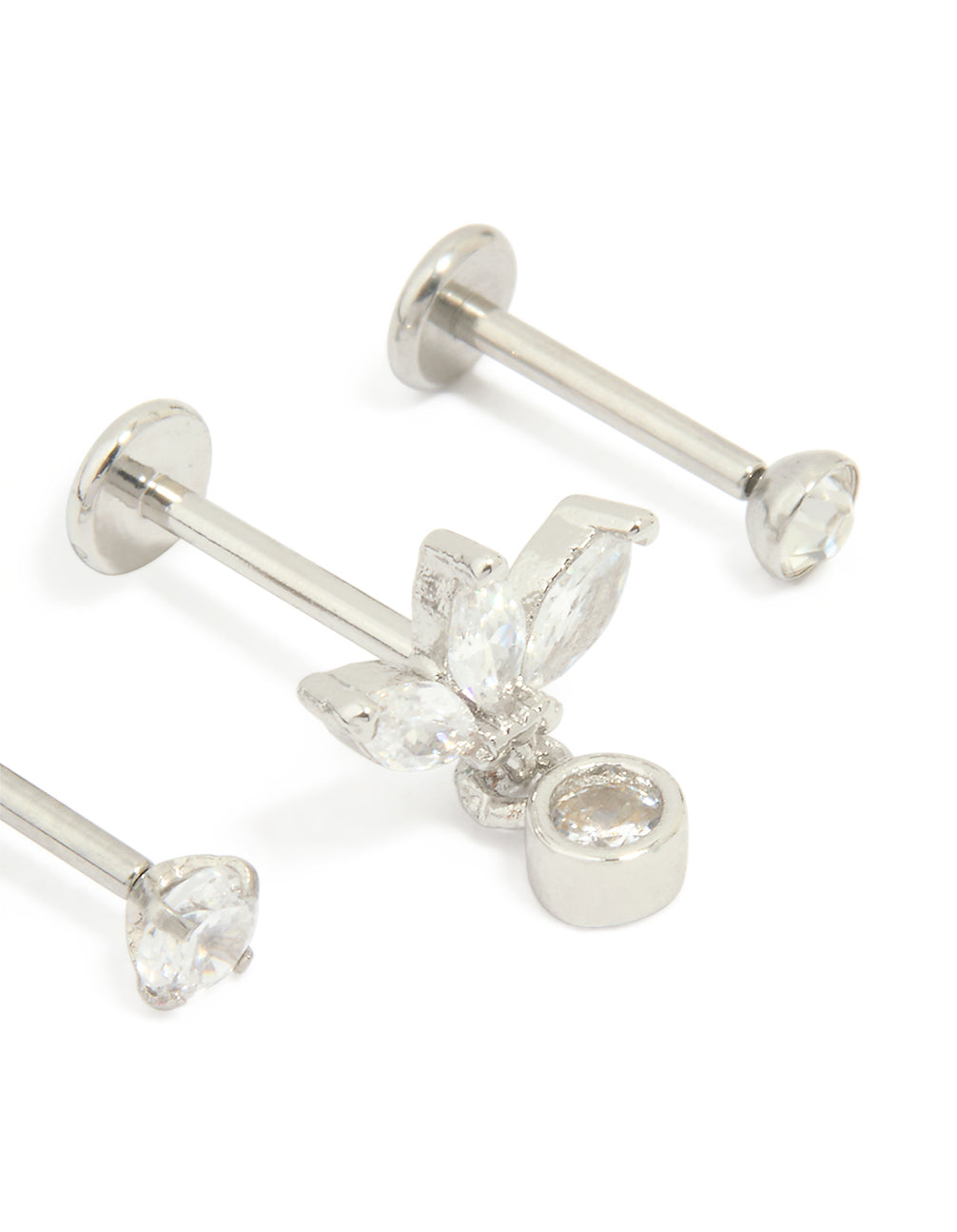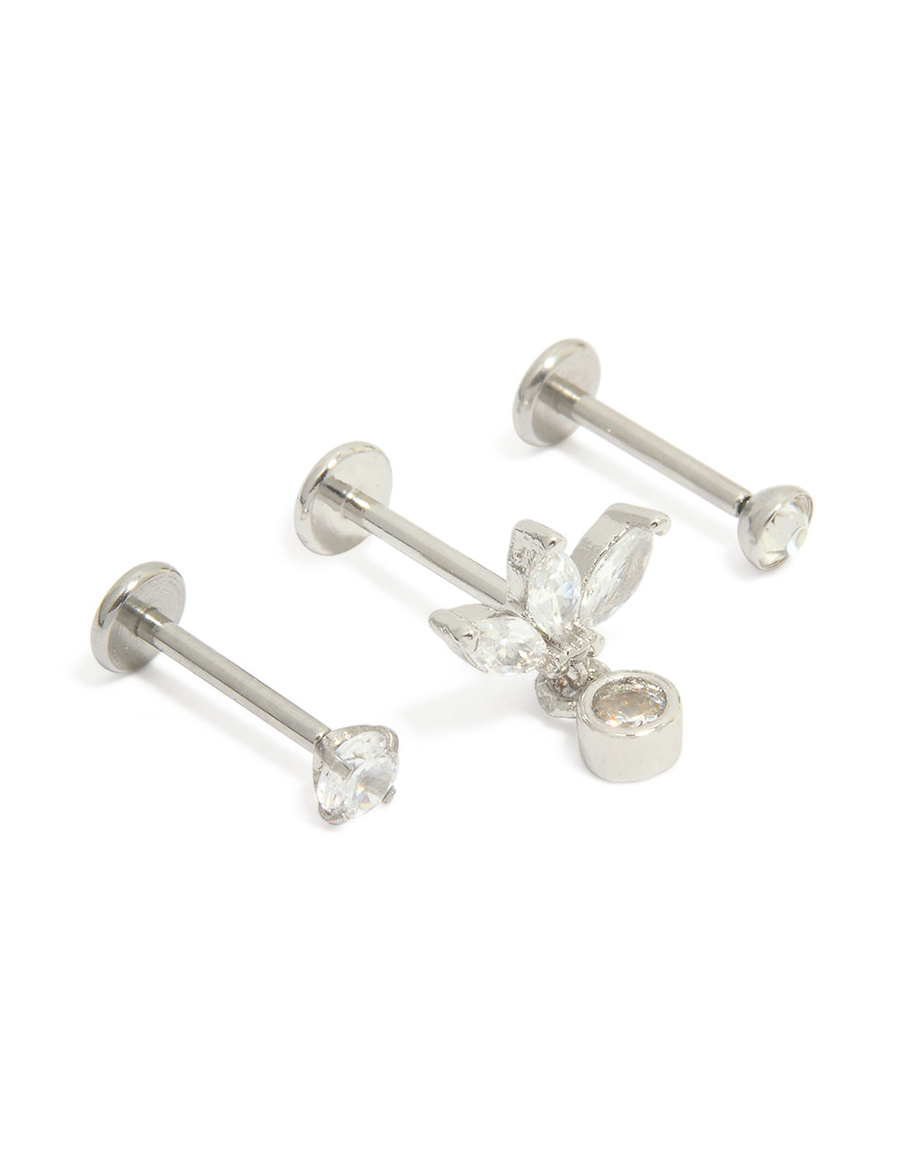Surgical Steel Cubic Zirconia Drop Threadless Flat Back Studs 3-Pack