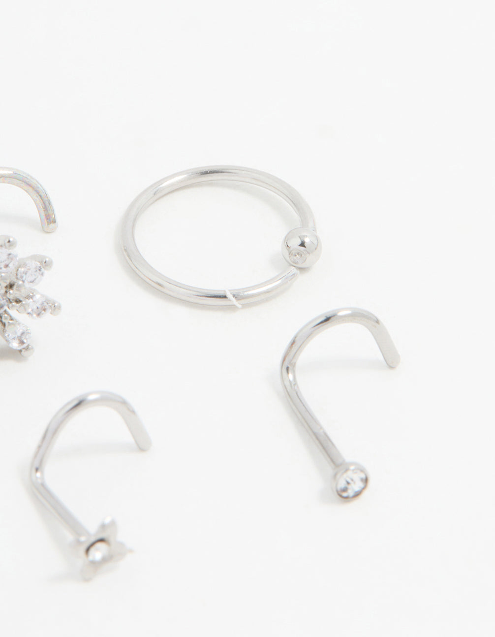 Surgical Steel Cubic Zirconia Flower Nose Piercing Pack