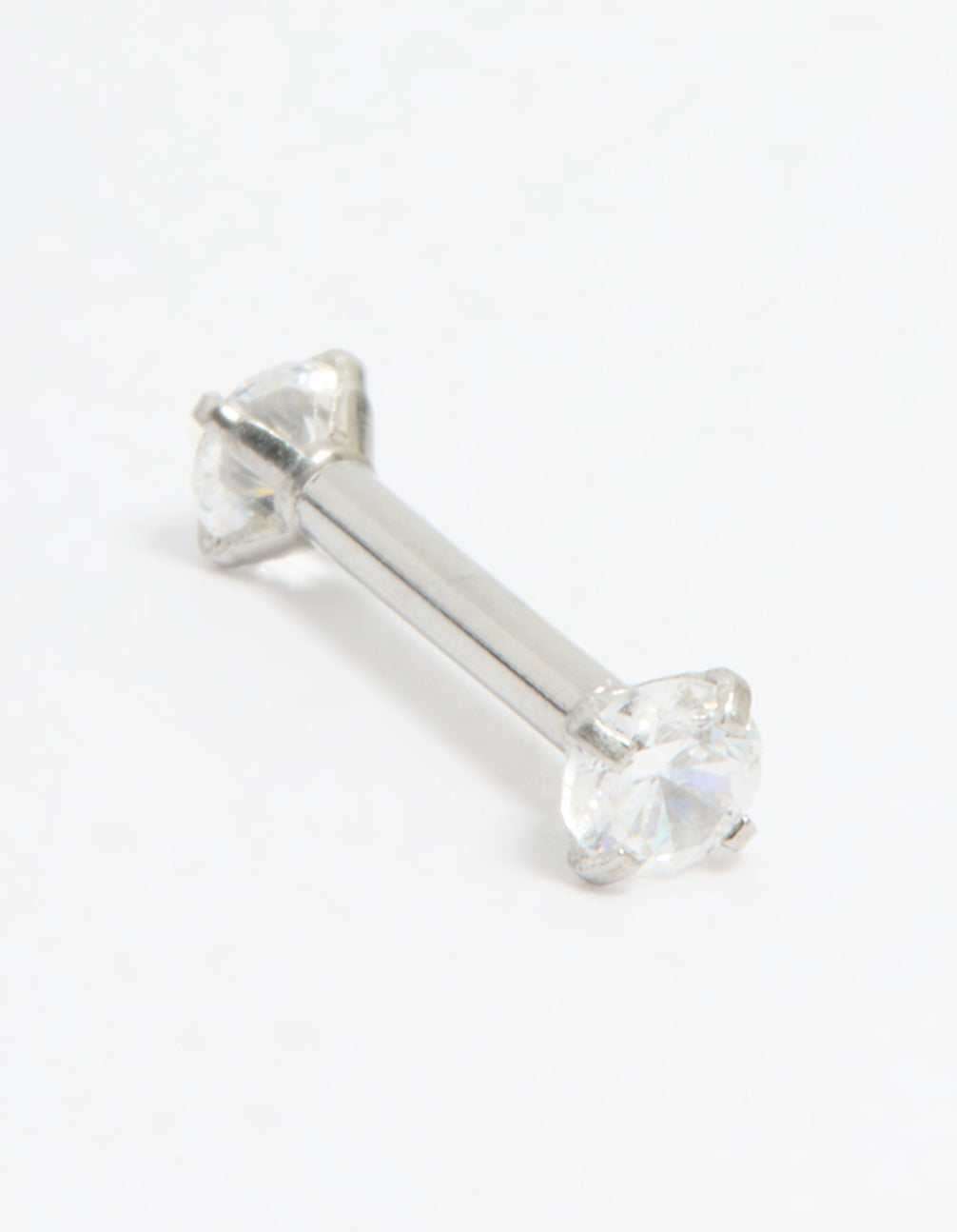 Meet the Surgical Steel Cubic Zirconia Reversible Flat Back Studs. Crafted with durable surgical steel and adorned with sparkling cubic zirconia crystals, these reversible studs are perfect for mixing up your look. The flat back design ensures comfort all day, making them ideal for cartilage piercings or lobe piercings alike.