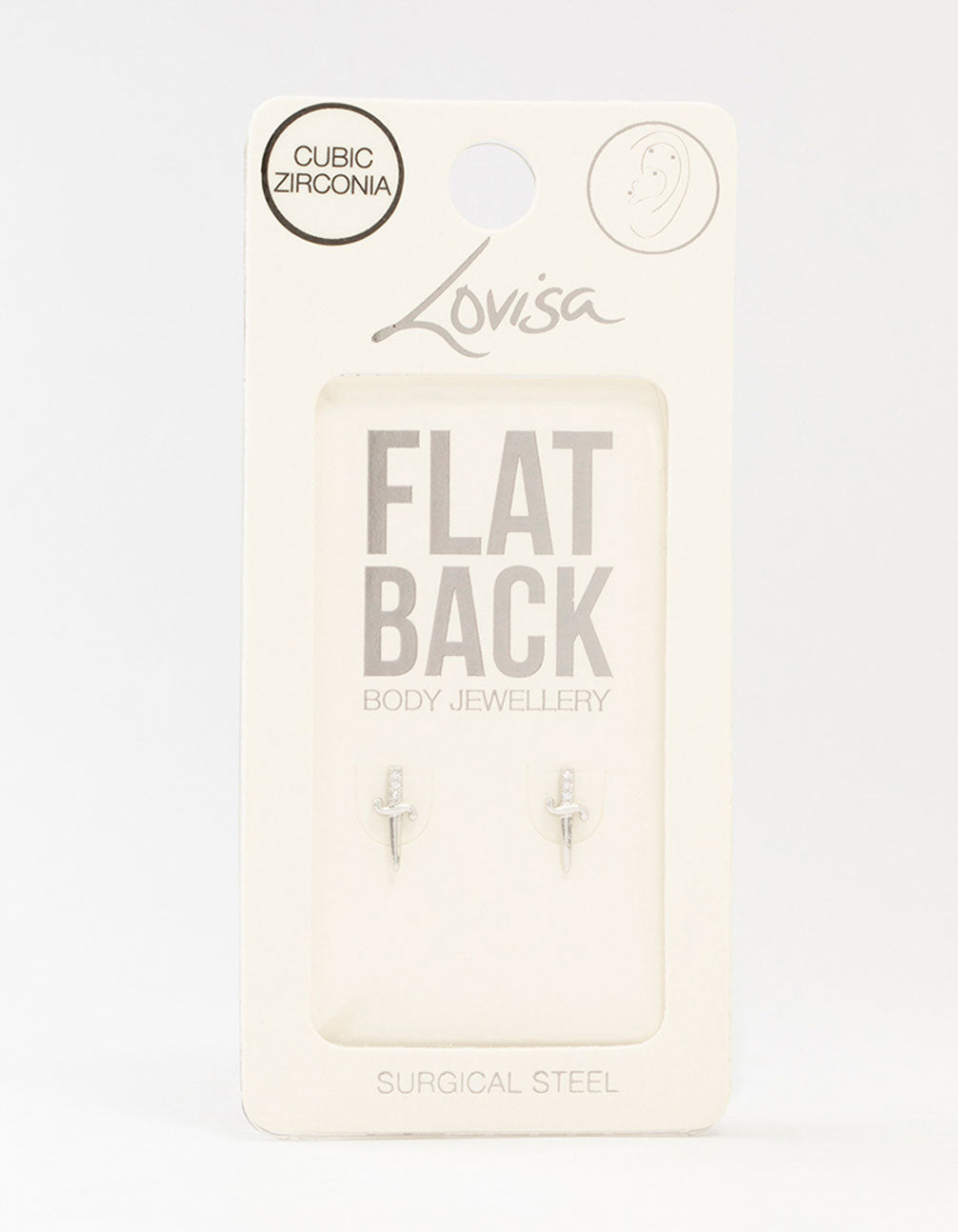Slay with this pack of two edgy, dagger-inspired flat backs made from sleek surgical steel and dazzling cubic zirconia. The compact 18g size makes them perfect for subtle, stylish ear piercings that will have you feeling fierce and fabulous.