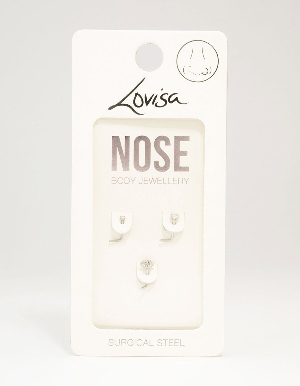 Customise your nose piercing with our selection of premium, surgical steel piercing jewellery. This nose piercing pack includes three individual piercings, each crafted from genuine surgical steel. Perfect for styling everyday!