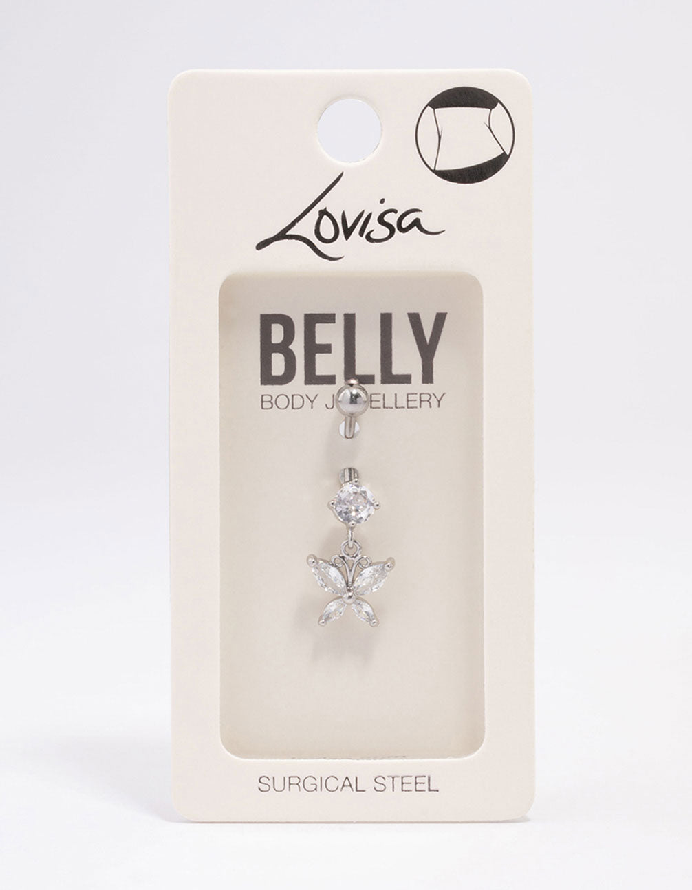 Surgical Steel Round Butterfly Drop Belly Piercing