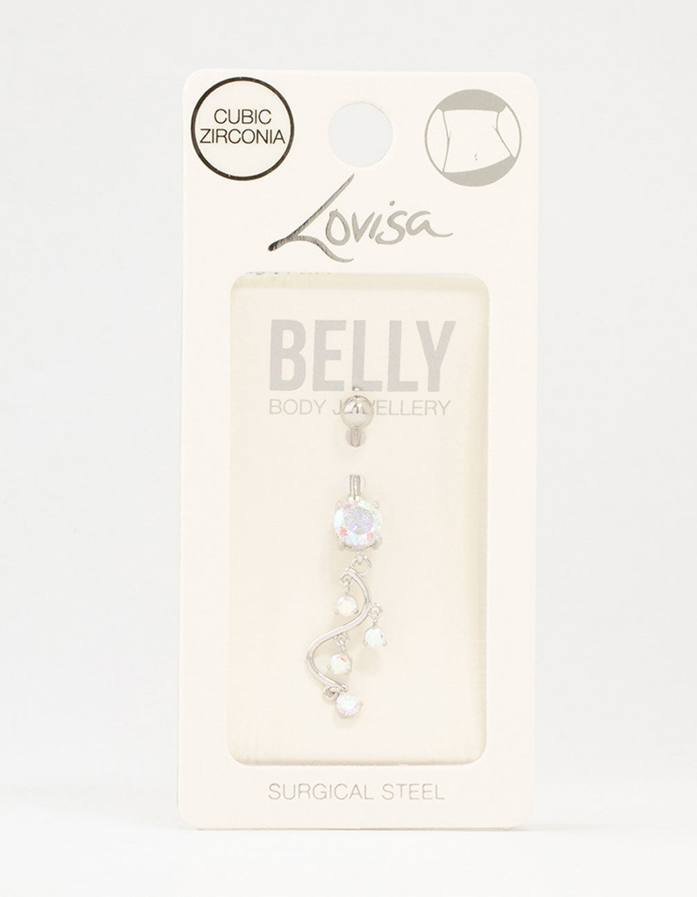Surgical Steel S-Shaped Cubic Zirconia Drops Belly Bar