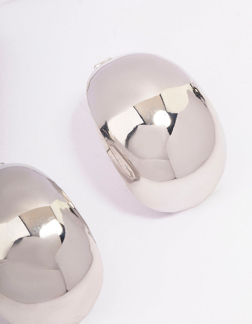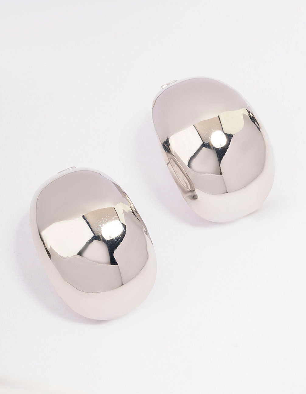 Silver Large Oval Stud Earrings