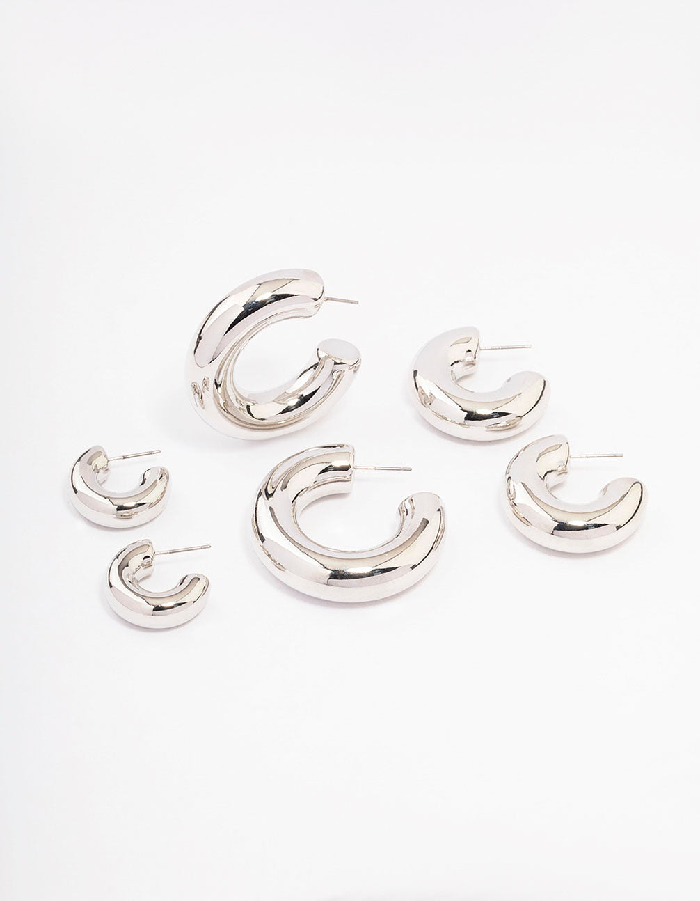Silver Thick Smooth Hoop Earrings 3-Pack