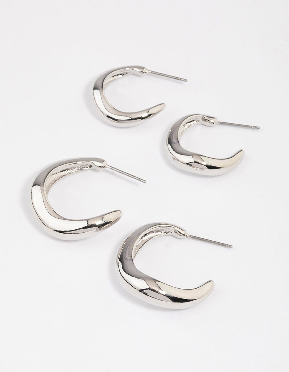This earring pack contains two sets of silver hoop earrings. Layer them together for a curated look, or style them solo for a minimalist touch.