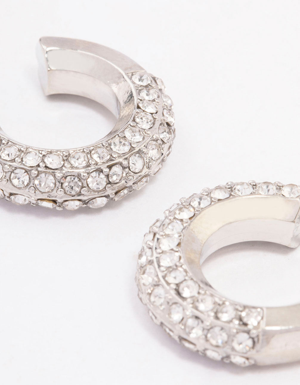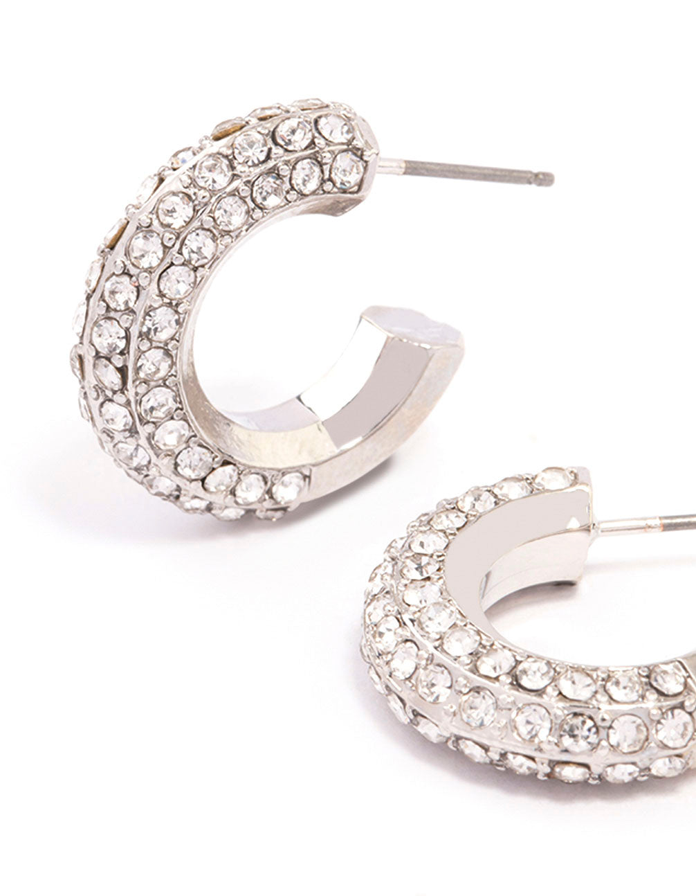 - Style these Silver Diamante Small Chubby Huggie Earrings with a set of simple silver stud earrings for a curated finish to your stack.