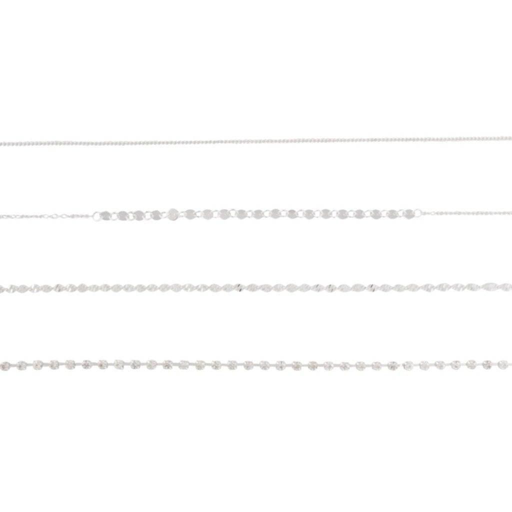Silver Diamante Twist Chain Anklet Pack