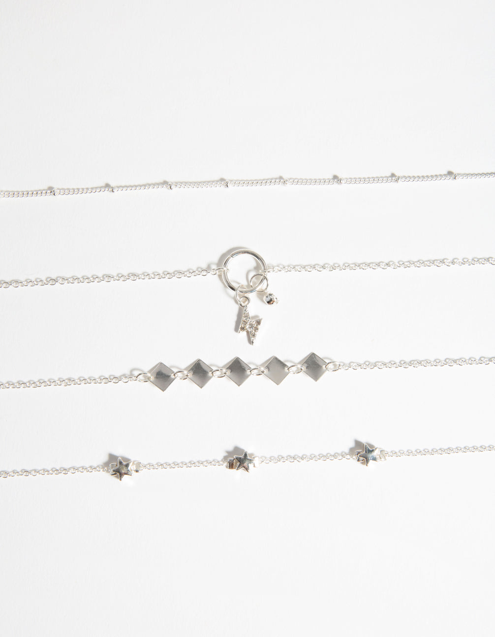 Delicate chains are versatile pieces that can be worn on their own for a classic look, or they can easily be stacked with other jewellery for big impact. This lovely silver-toned bracelet and anklet pack includes four different designs that are perfect for mixing and matching.