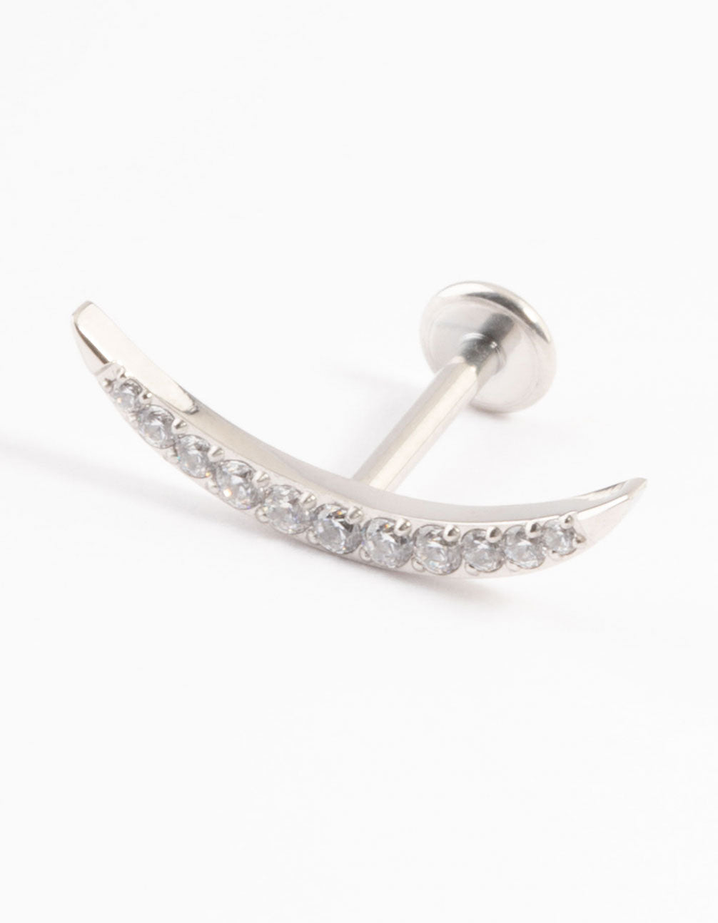 Titanium Cubic Zirconia Half Moon Threadless Single Flat Back Stud
