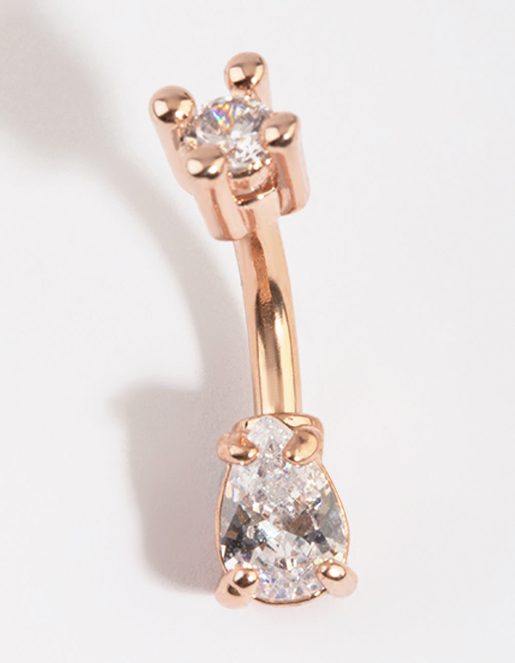 Rose Gold Plated Titanium Pear Diamante Belly Bar