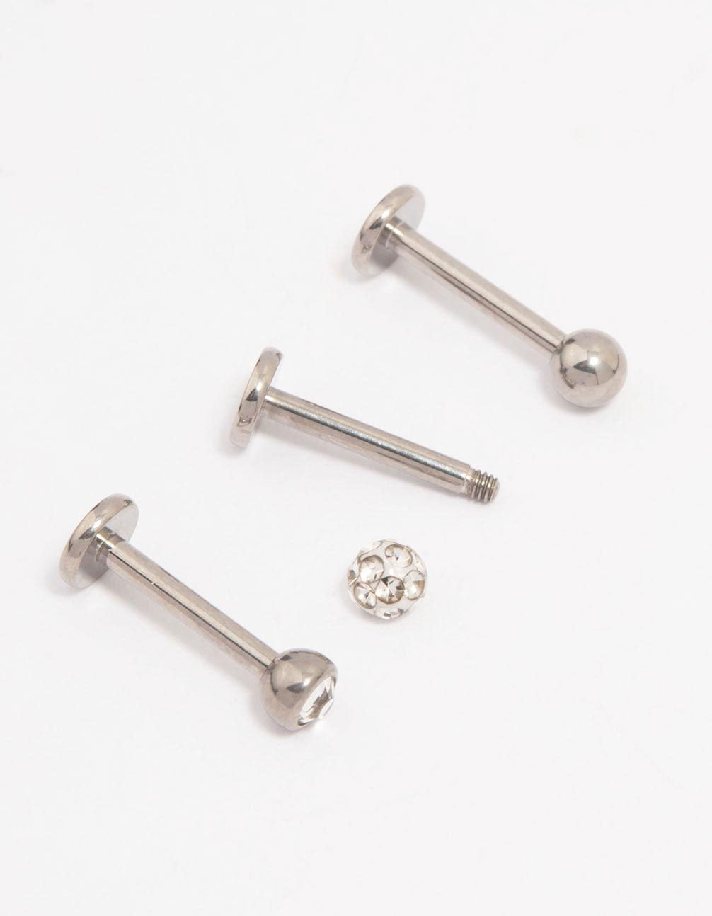 This flat back pack includes three individual flat back piercings, designed with cubic zirconia accents for a touch of glamour.