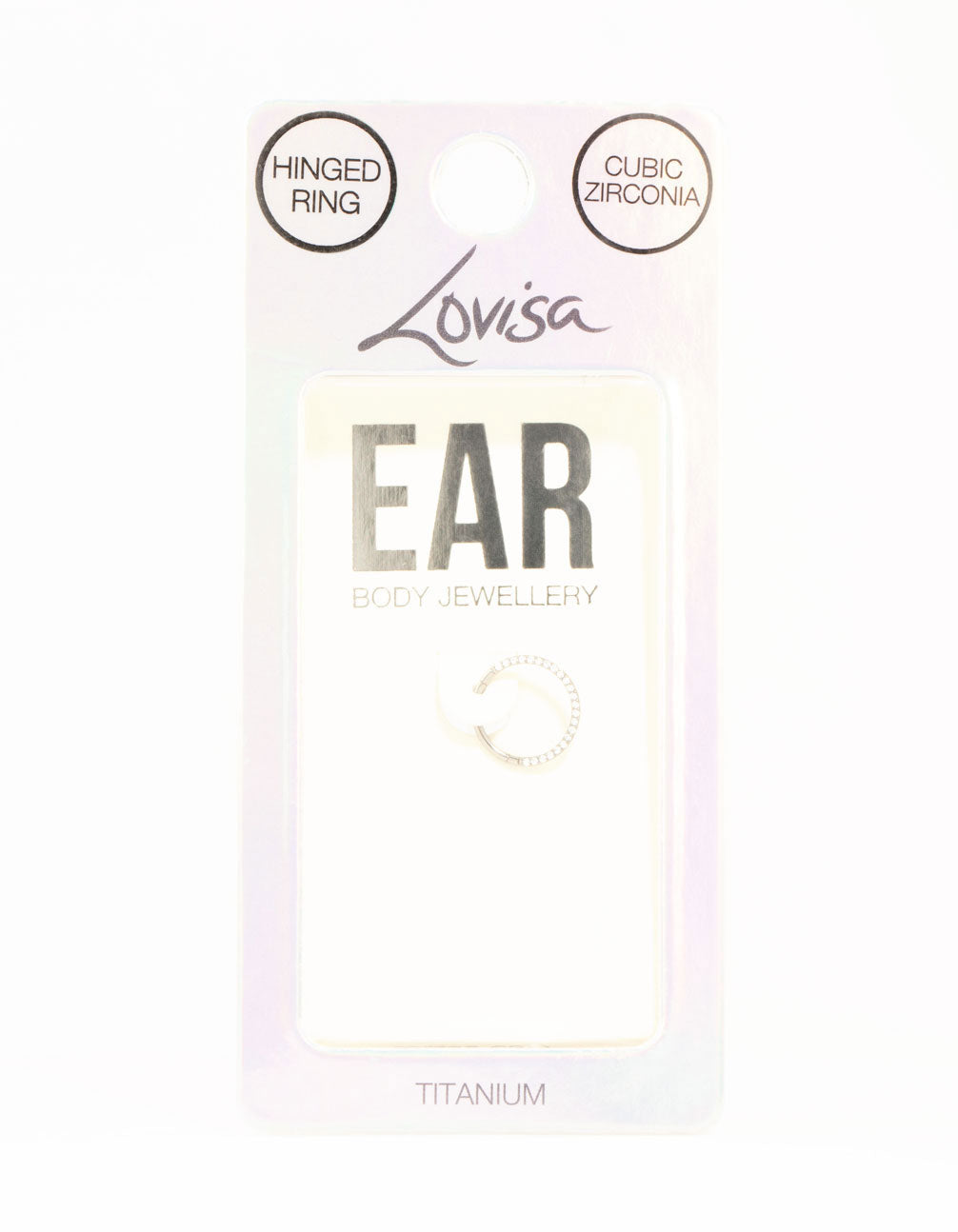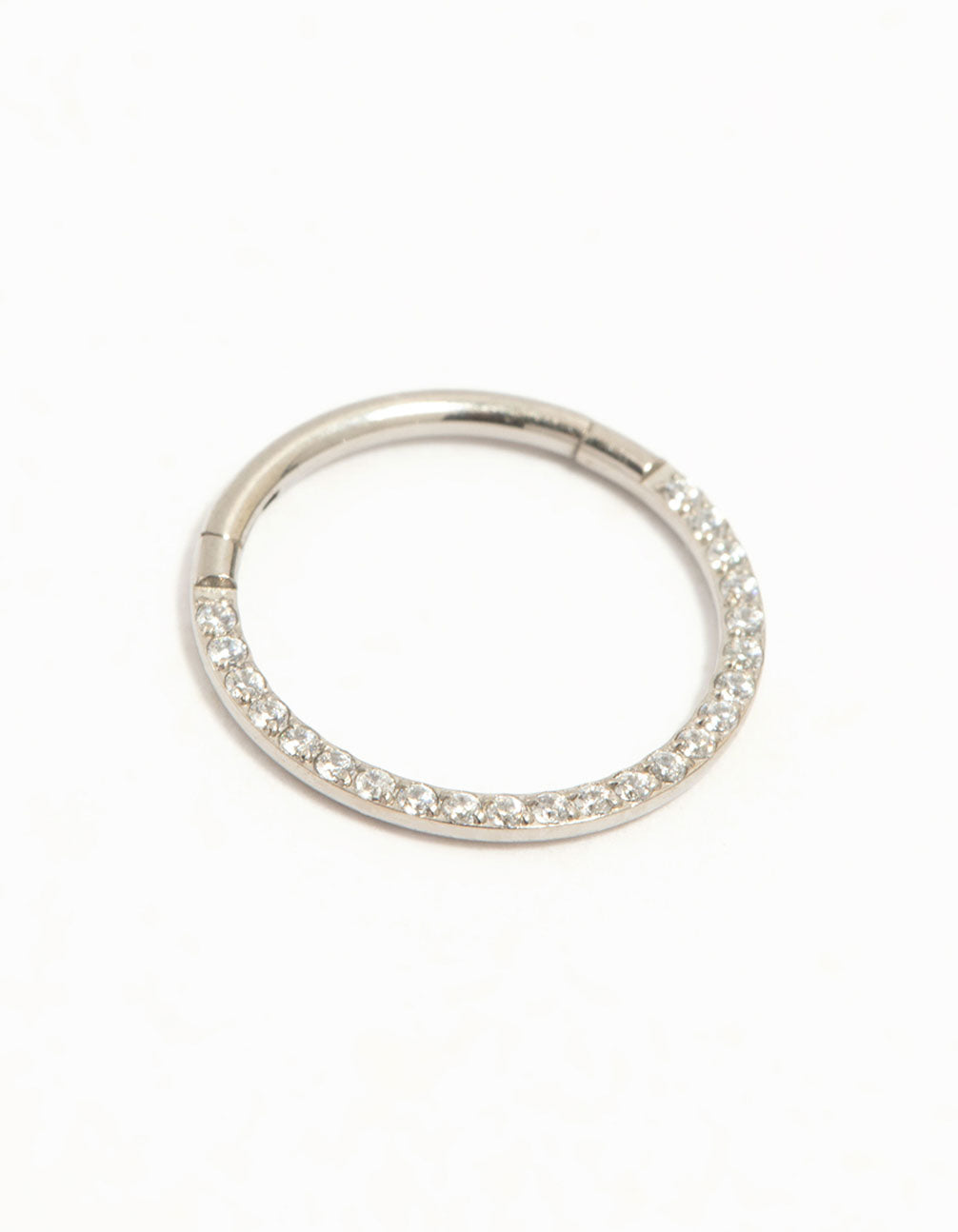 Meet your new favourite accessory: this timeless titanium clicker ring! Perfect for cartilage piercings, it's lightweight, durable, and adorned with brilliant cubic zirconia gems for a touch of sparkle.