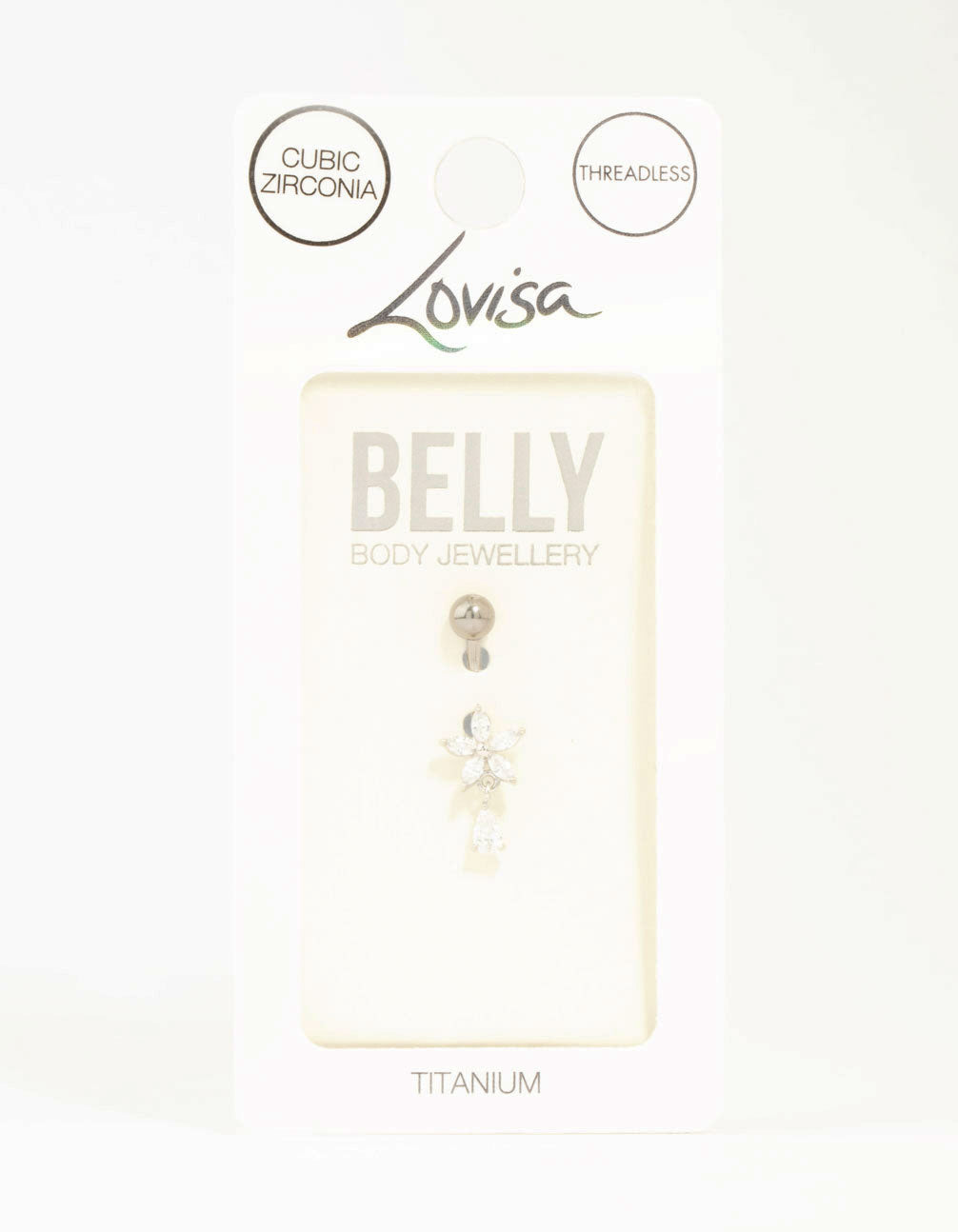 Titanium Cubic Zirconia Flower Threadless Belly Bar