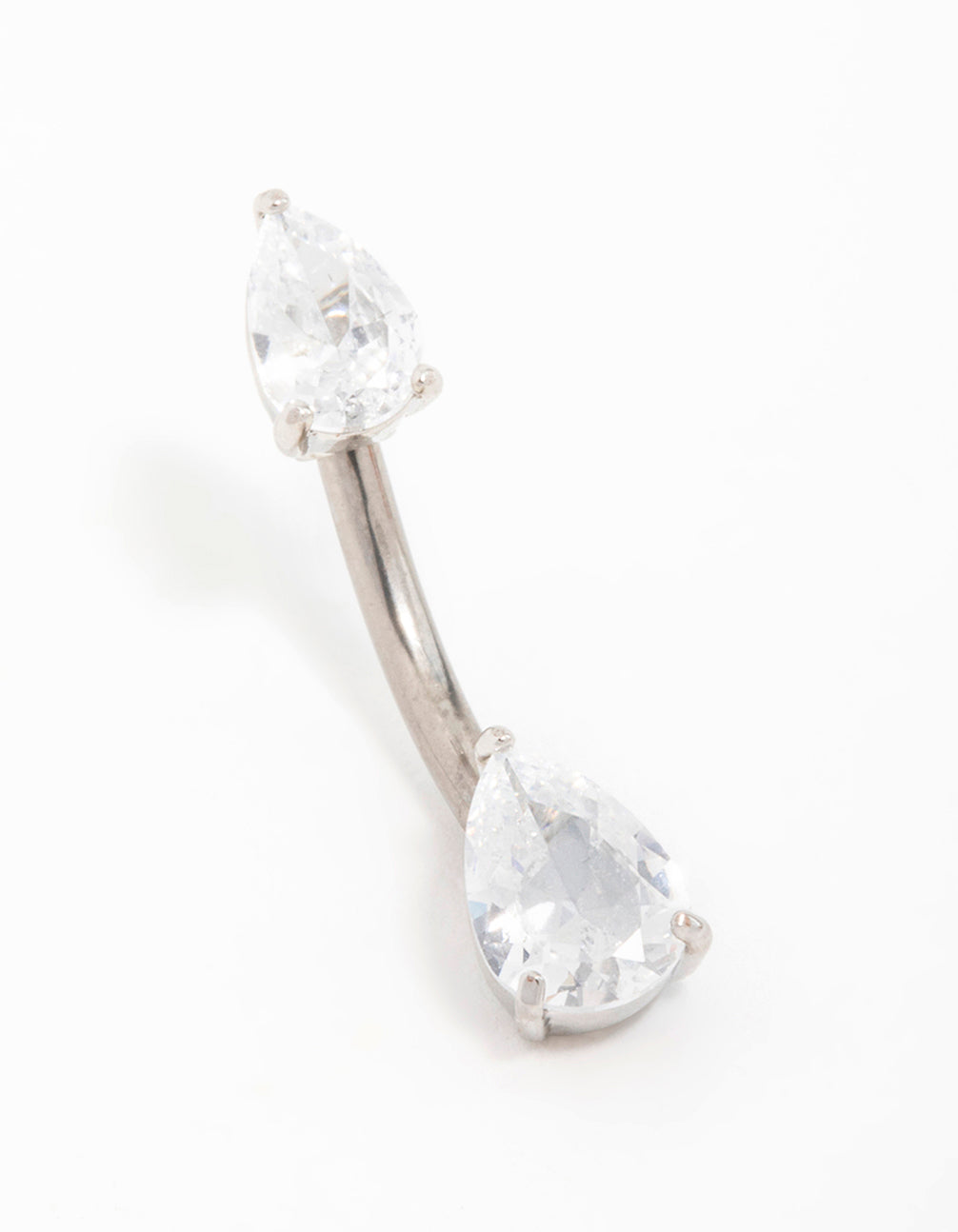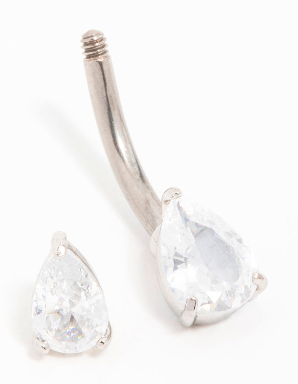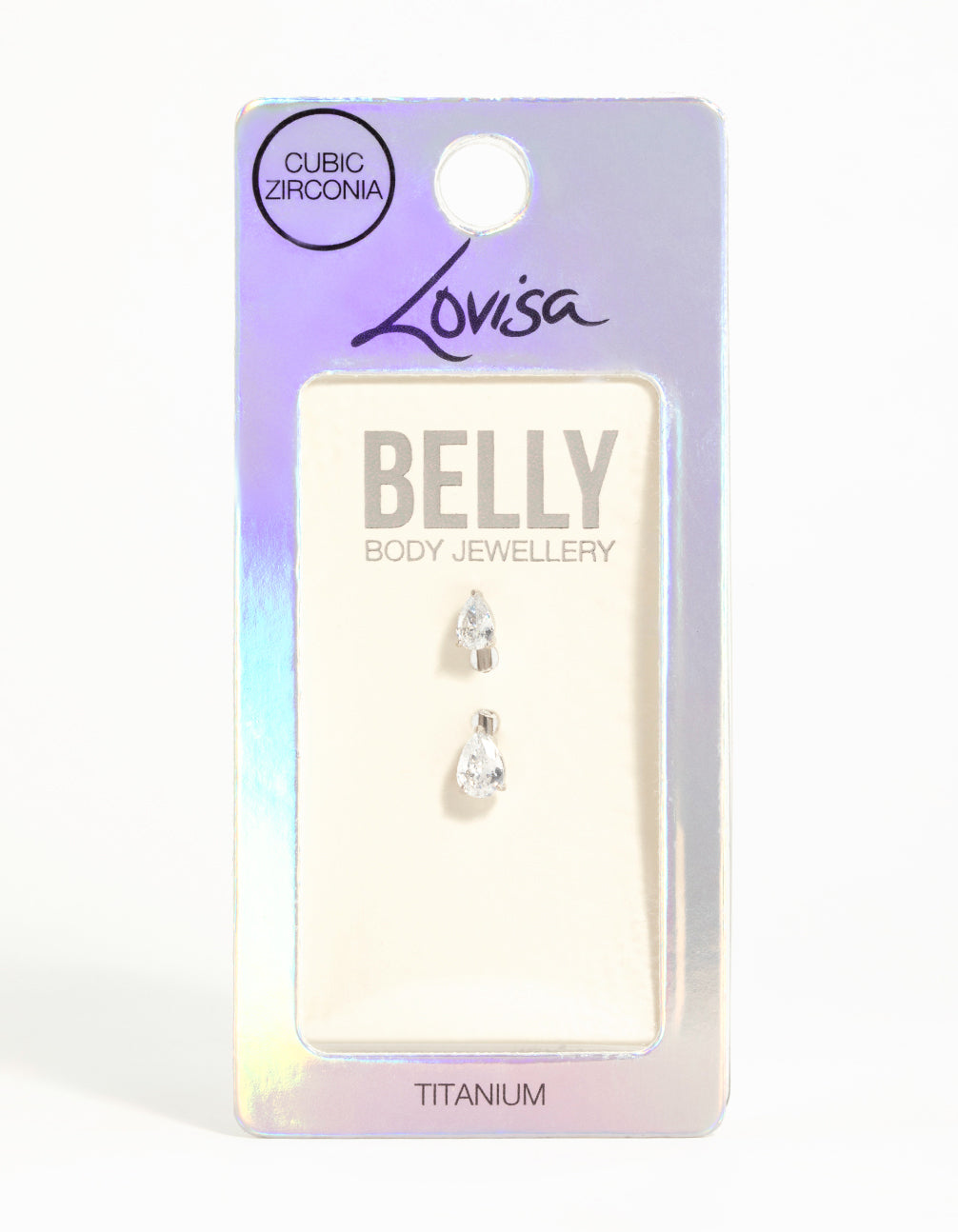 Titanium Cubic Zirconia Pear Belly Bar Titanium Cubic Zirconia Pear Belly Bar Titanium Cubic Zirconia Pear Belly Bar