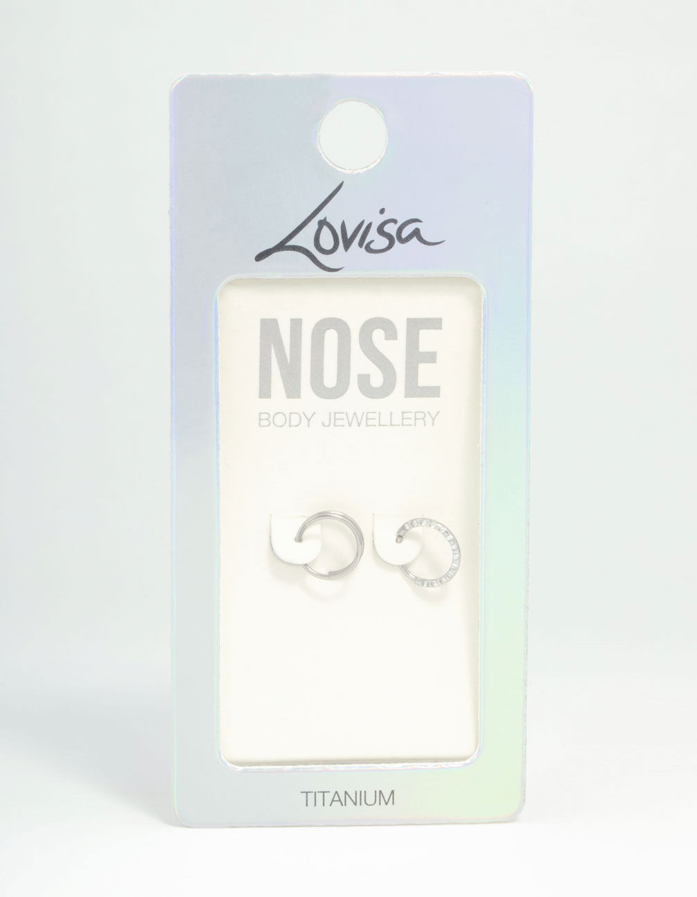 Titanium Cubic Zirconia & Spiral Nose Rings 2-Pack