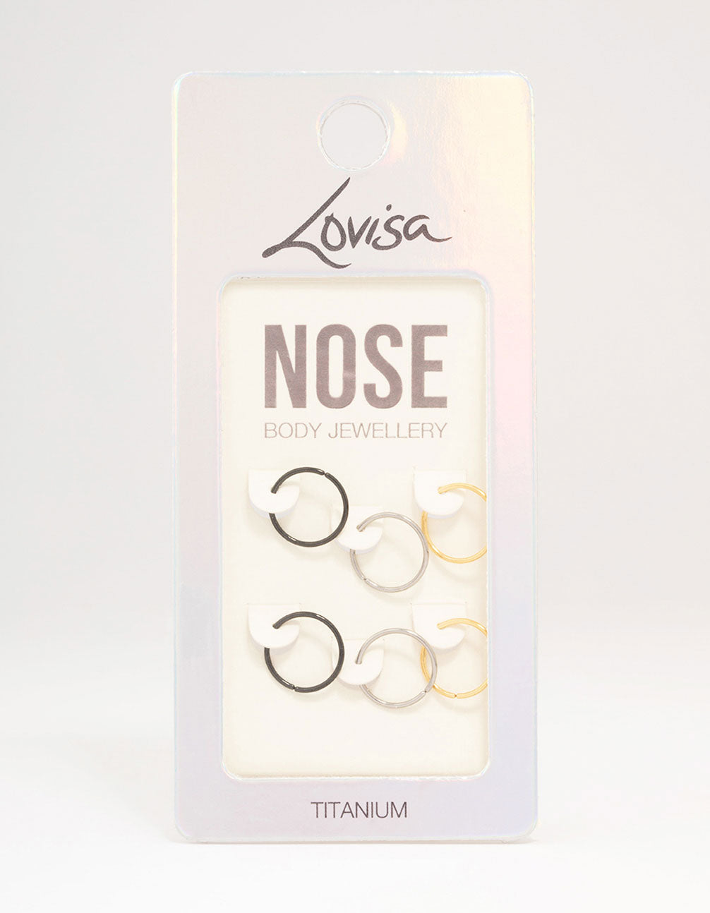 Titanium Mixed Metal Classic Nose Ring 6-Pack Titanium Mixed Metal Classic Nose Ring 6-Pack Titanium Mixed Metal Classic Nose Ring 6-Pack