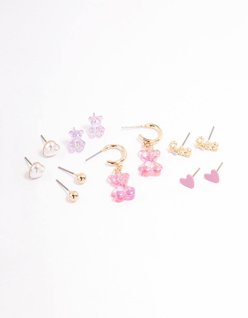 - This earring six-pack includes one pair of huggie hoop earrings and five pairs of novely studs for a playful look.