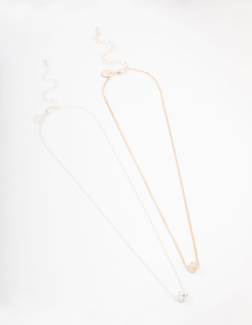 Mixed Metal Crystal Ball Pendant Necklace Pack