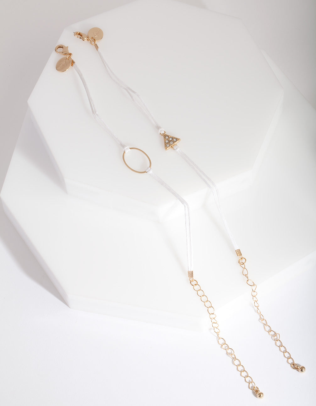 This white thread bracelet pack features a diamante encrusted gold-tone pendant and a open circle pendant.