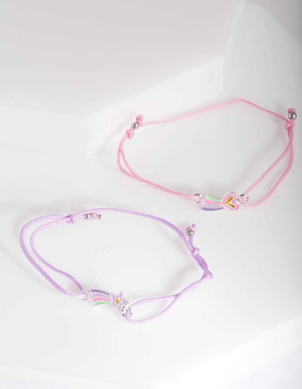 This multi coloured thread bracelet pack features star and heart rainbow pendants.
