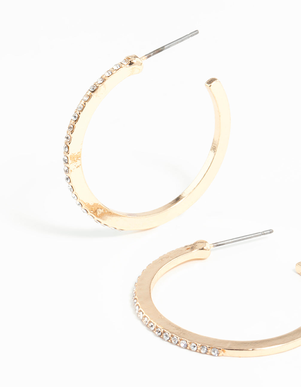 This is the finishing touch you've been searching for! These hoop earrings are gold-toned and adorned with eye-catching diamantes. Perfect for transitioning from day to night.