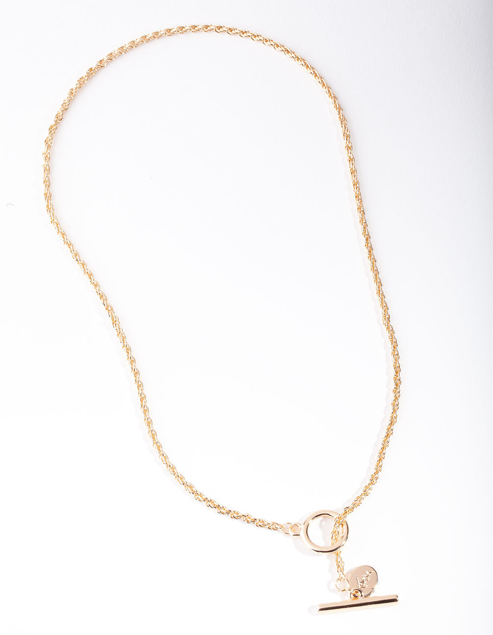 Add the finishing touch to your look with a gold-toned necklace. This style comes with a mixed chain design and a T-Bar closure. Style with chunky rings and hoops for an on-trend look.