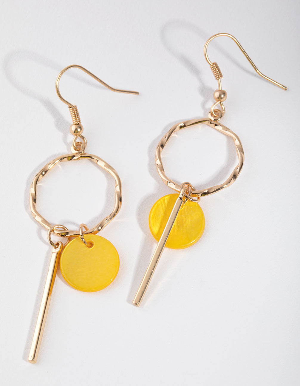 Add a pop of colour to your outfit with a fun pair of fashion earrings! These gorgeous gold-toned drops have a bright yellow disc design to draw eyes to you. Wear these and give your outfit a funky flair!
