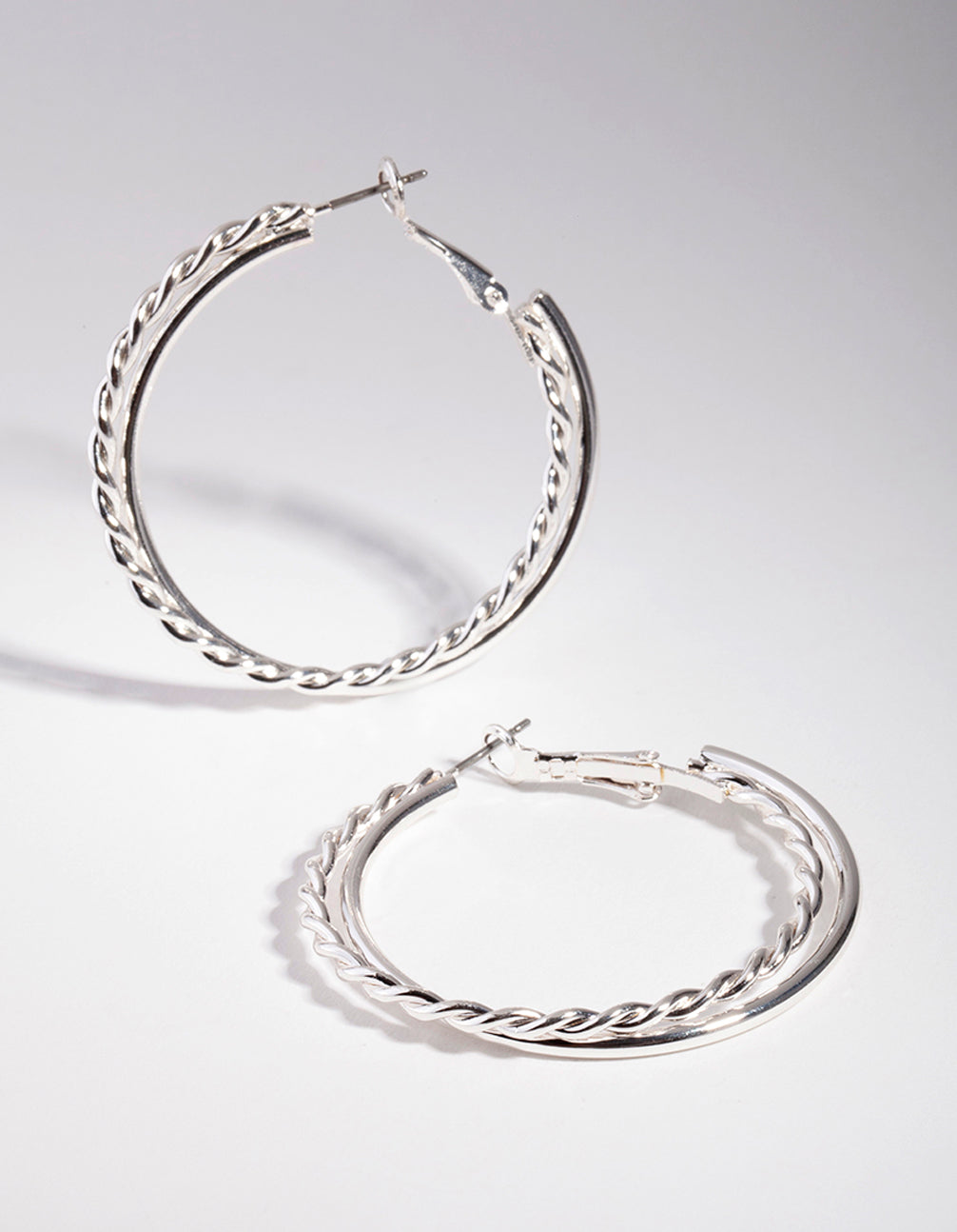 Silver Twisted Double Hoop Earrings
