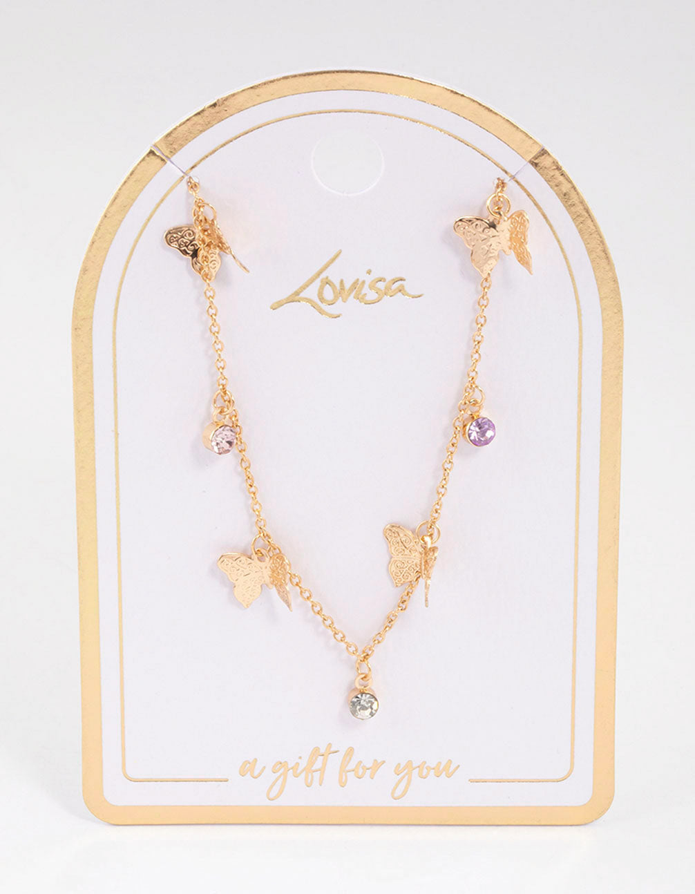 Gold Butterfly Drop Station Necklace
