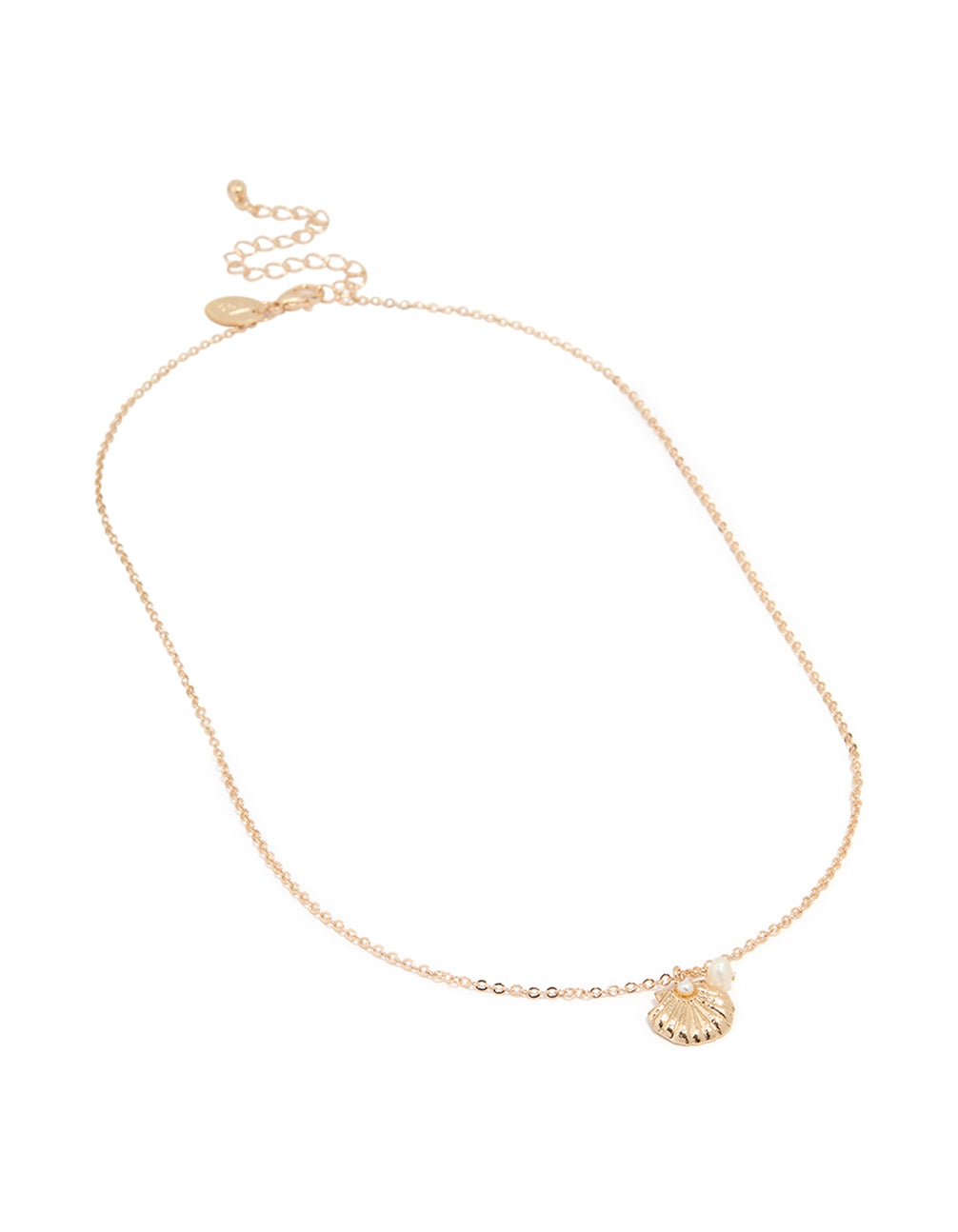 Gold Freshwater Pearl & Clam Pendant Necklace