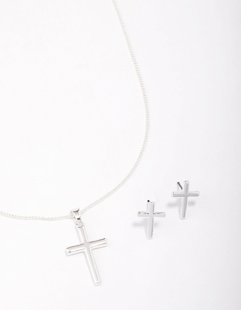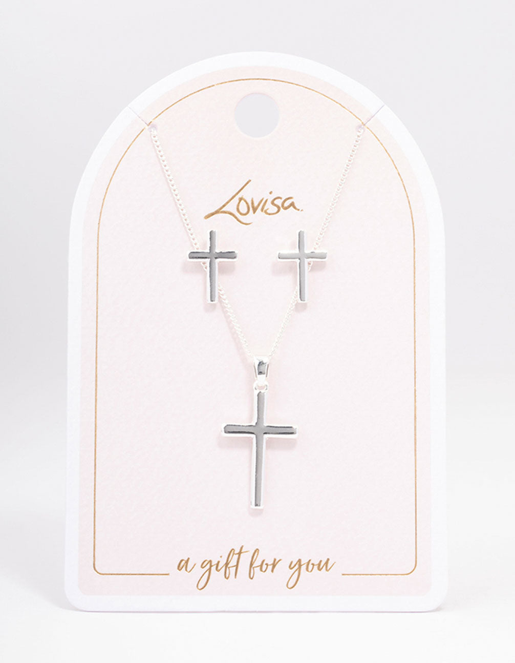 • Silver Plain Cross Jewellery Set - link has visual effect only
