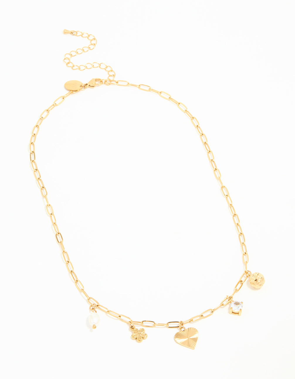 Waterproof Gold Plated Stainless Flower & Heart Charm Necklace
