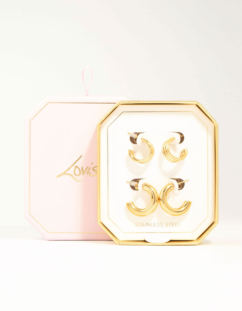 Waterproof Gold Plated Stainless Steel C Shaped Hoop Earrings 2-Pack